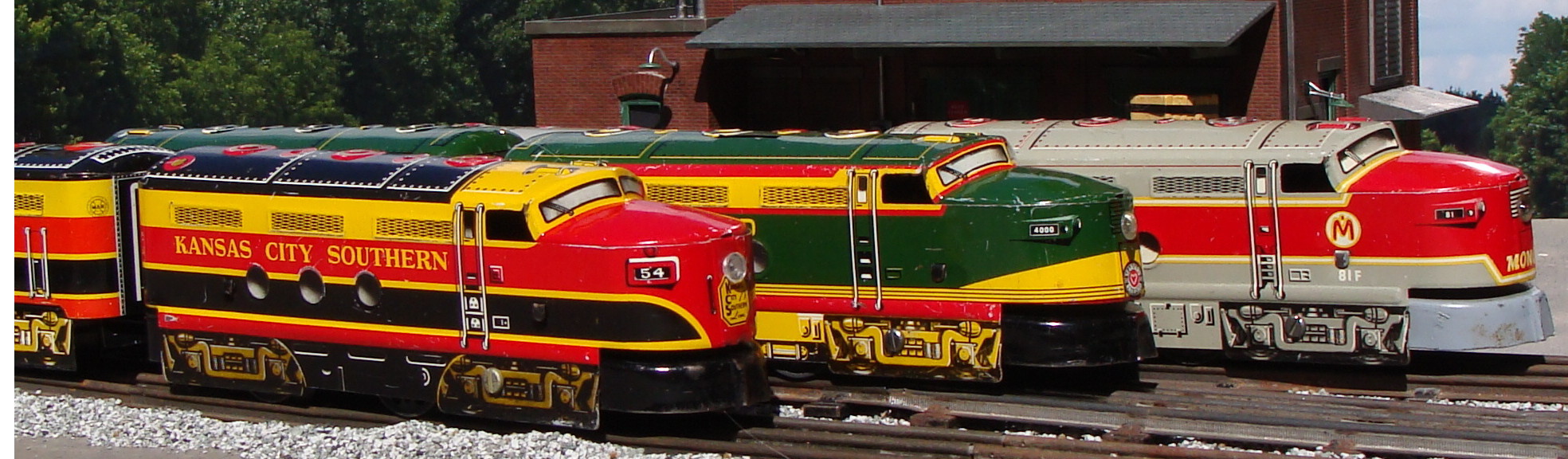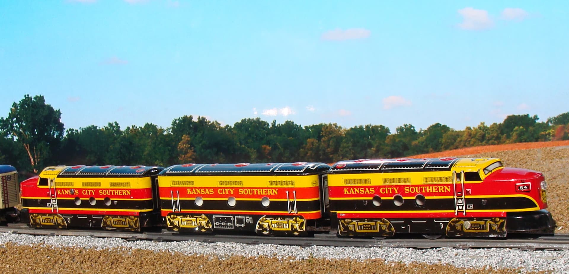 wearing the liveries of the Kansas City Southern, Seaboard, and Monon prototype diesels.