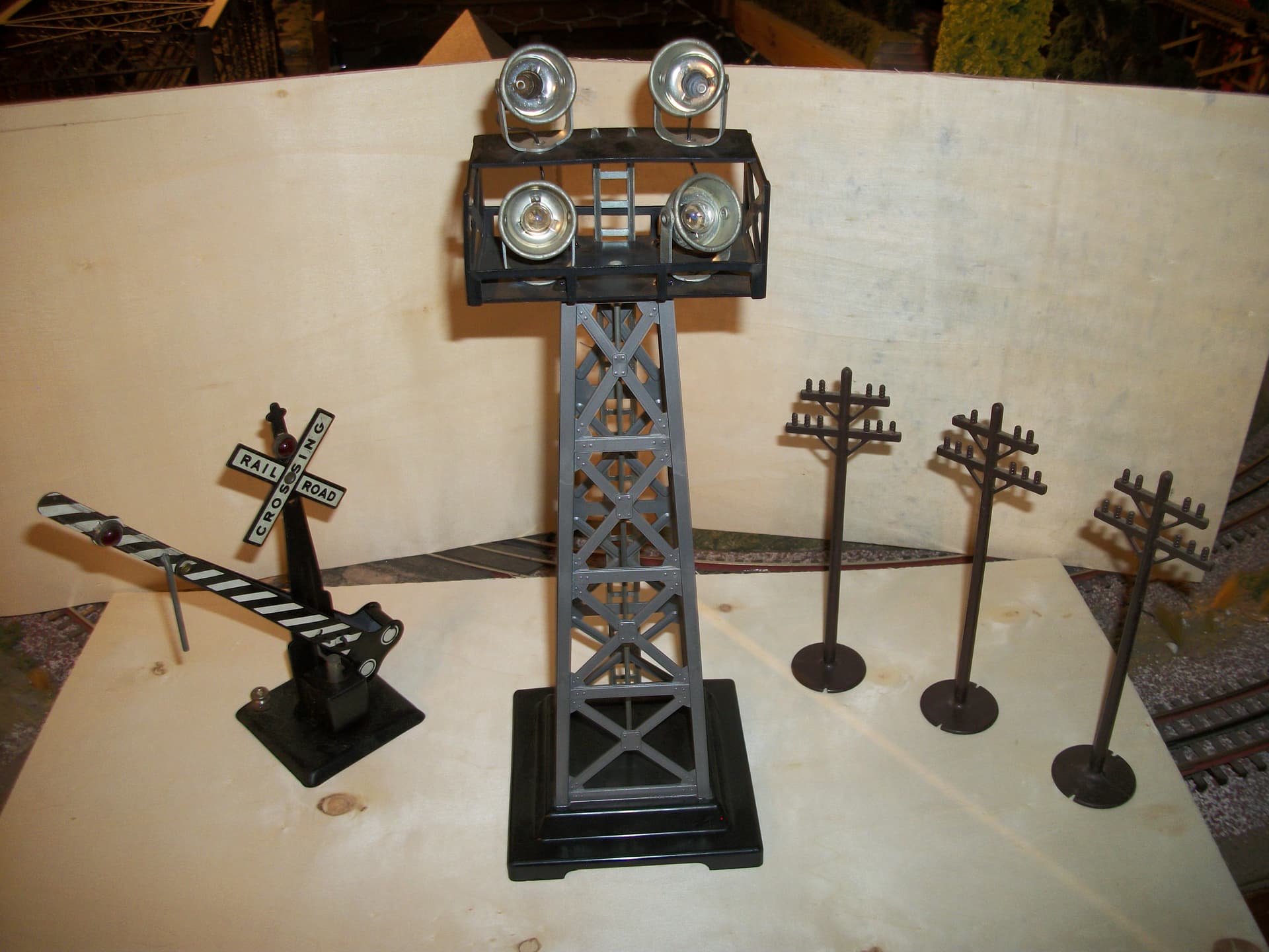Next is a selection of pieces. A tall light tower, a gate crossing and three telephone poles.