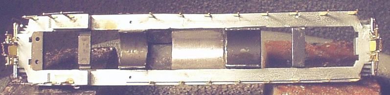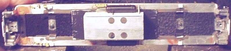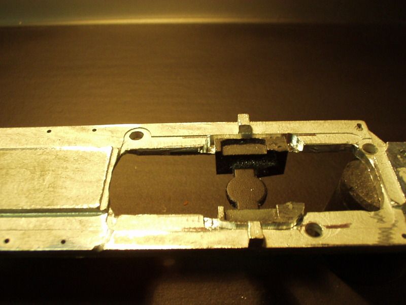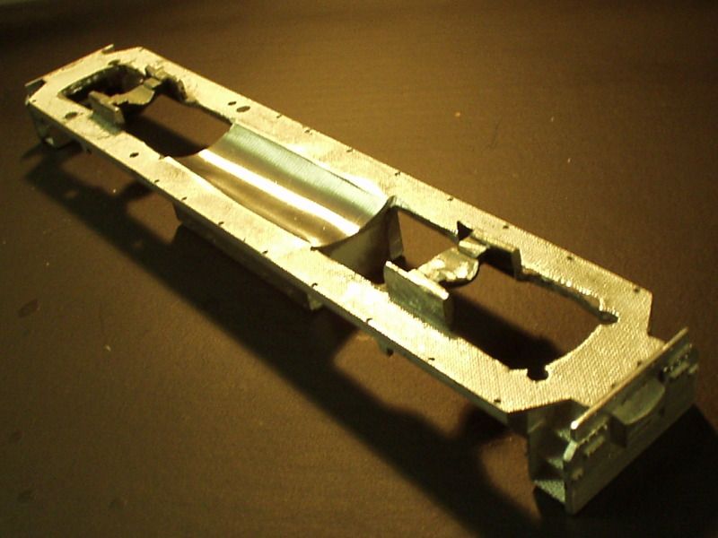 My solution to both improve the pickup and make the Hobbytown RS-3 chassis & drive compatible with Atlas, Kato, Athearn was to rebuild the chassis to accommodate a Proto 2000 drive and fuel tank/motor mount. Here’s some pix of the frame modifications: