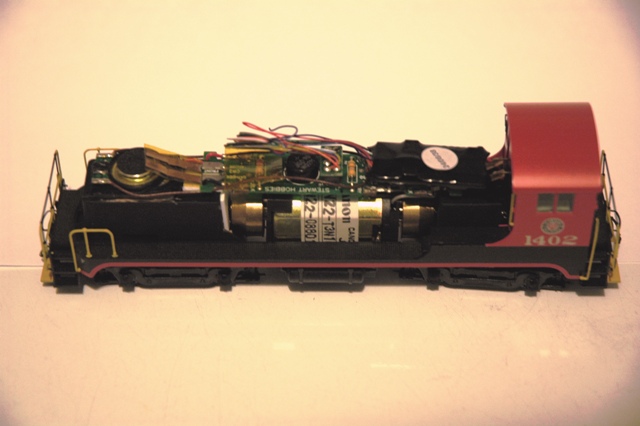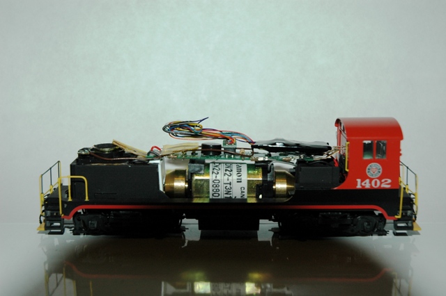 Since I have no idea what a Baldwin engine sounded like I fitted one of the new Soundtraxx DSD101LC decoders with 1st gen EMD motor sounds and a 1" oval speaker(8 ohm).