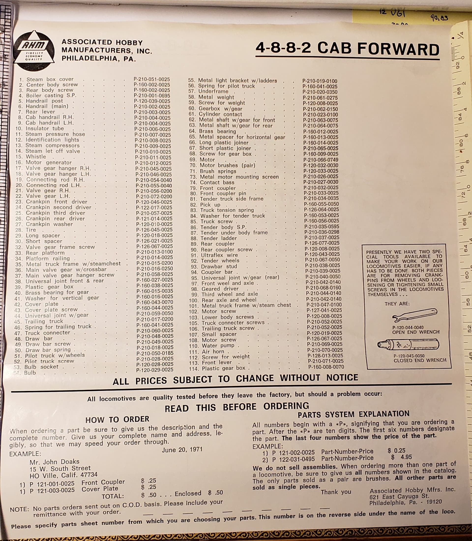 Some pics of the paperwork included with the AHM Cab Forward for anyone interested:
