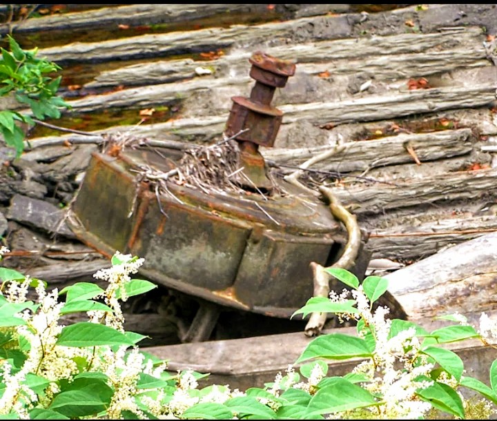 In the photos below the race was temporarily drained so the engineers who made the drawings and surveys I’m using could better evaluate the condition of the mill. I’m assuming a lot of the milled timber here was the remains of the head gate.