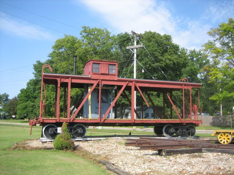 The Rock Island depot in West Liberty IA contains a rr museum & CC office. In the middle of the lawn is this caboose & MOW vehicle. Volunteers are restoring the caboose. Vic Scherer (sp), a neighbor & senior worker, came over to talk to us when we stopped. They are selling small commemorative bricks at the office to support the cause.