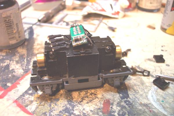 So when I got my critter home and it began surging along in time with the whumping noise my joy turned quickly into frustration. I had bought what I intended to replace! [:(!] The surging becomes really apparant with a short string of cars as they join in the crazy surging dance moving down the track.