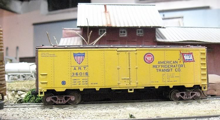 The wheels on the reefer, besides being the wrong color look to be two different diameters. I could swear that the right hand, inside wheel is 36", but the pictures are so poor it’s hard to tell. Again you need to weather the couplers. The trucks and wheels represent a friction bearing type where the wheels on the prototype were always oily black from the lube oil coming off the journal box and the trucks themselves were sometines rusty in the center, but always had spilled oil all down the journal boxes.