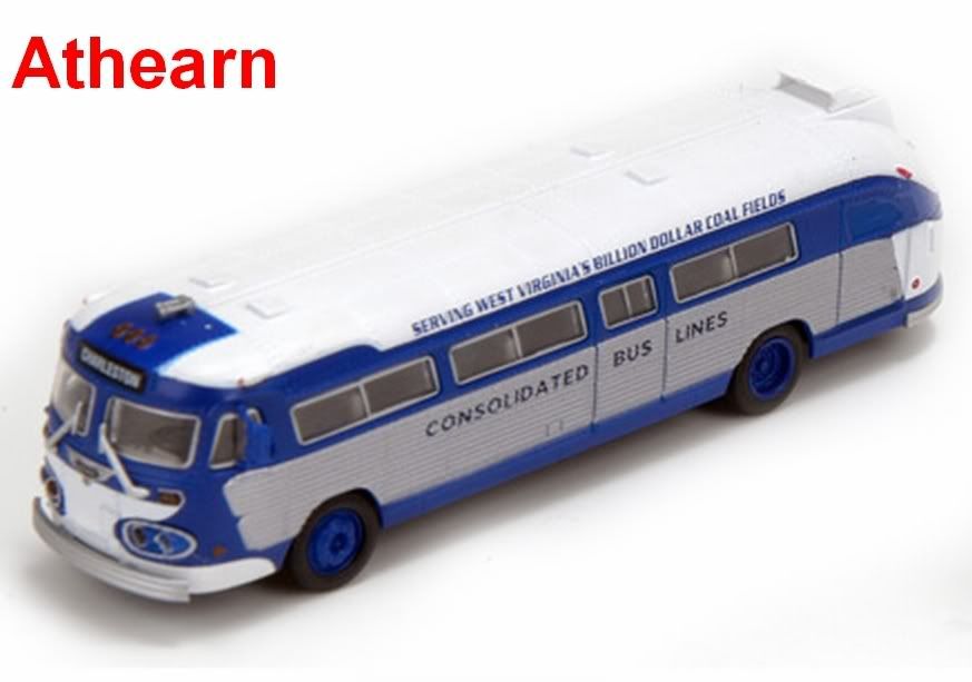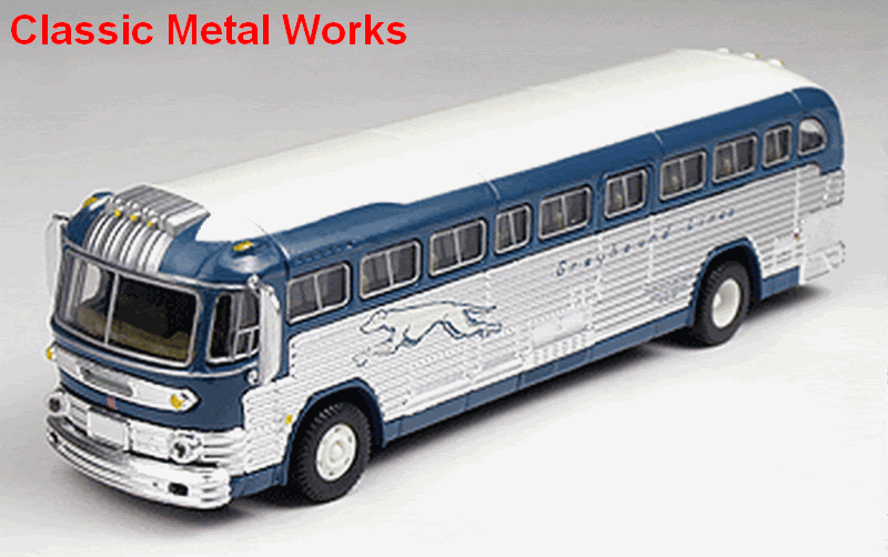 The Athearn model is a FLXIBLE VisaCoach(IIRC) from the 50’s. The Classic Metal Works bus is a GM PD 4103 built for Greyhound in the early 50’s. Both model look very accurate when comparing them to prototype photos. Jim Bernier