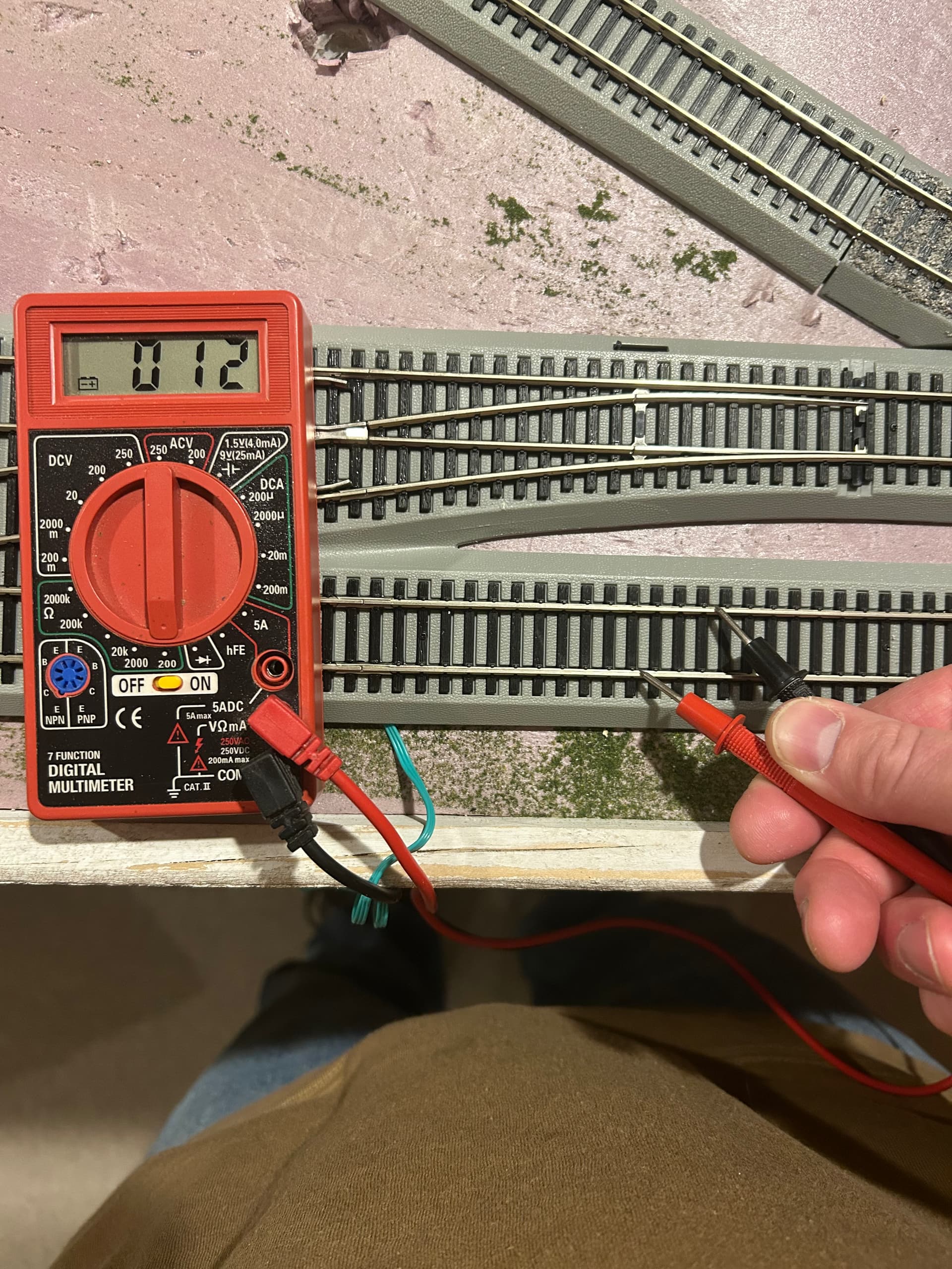 My readings are roughly 3 watts around the track between the track fault beeps but once I check the crossover turnout it reads either a 0 or 1. When I disconnect the opposite ends of the crossover, the readings are the same. When I fully remove the crossover turnout and install multiple turnouts then I don’t receive the fault and throughout the track receives 3-4 watts (see new picture). When running a locomotive then I receive higher watts. The reason I wanted to install the crossover turnout was because my running stock would constantly derail on the turnouts. Not sure why since it would happen on different turnouts and different stock each time. Thx for the idea of looking into the wattage though.