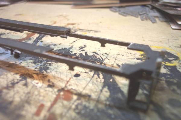 I did get a little work done on the walkways. I cut off the cab base and the small section of the raised walkway. then I added .040" evergreen styrene to fill in the gaps at the front and the rear of the locomotive. first is a shot of the walkway with all the junk cut off: