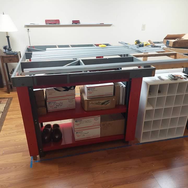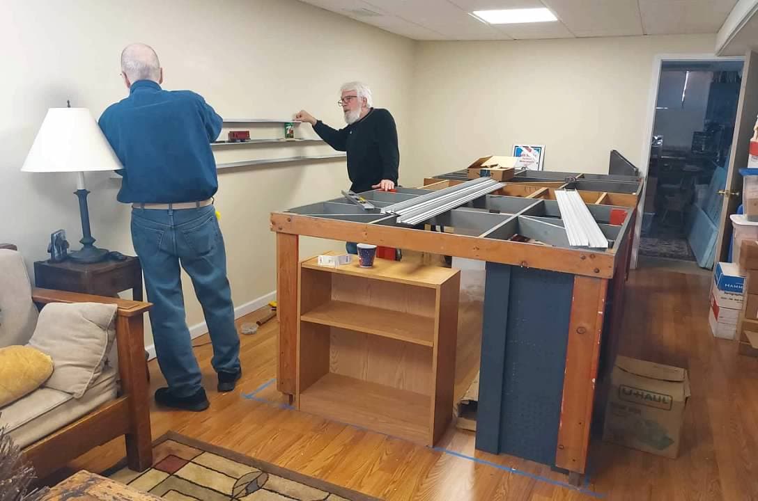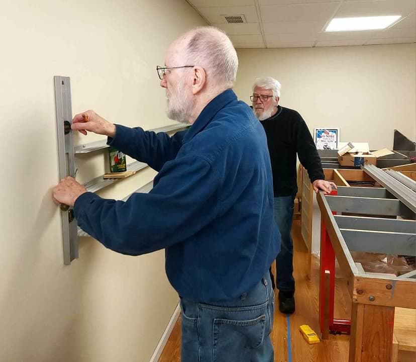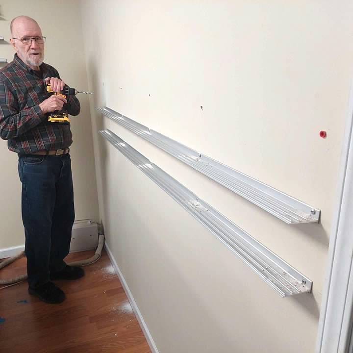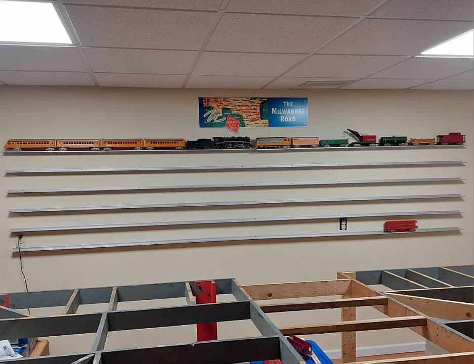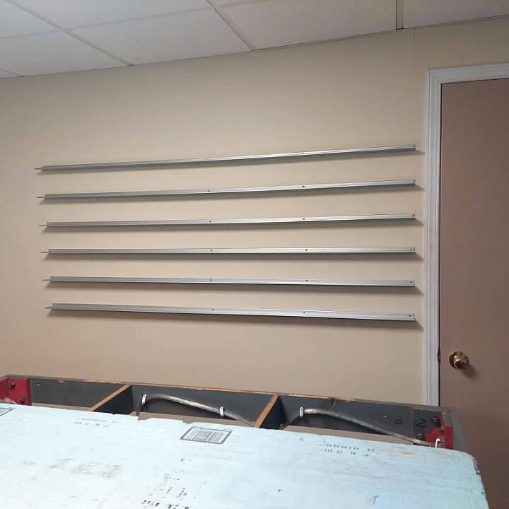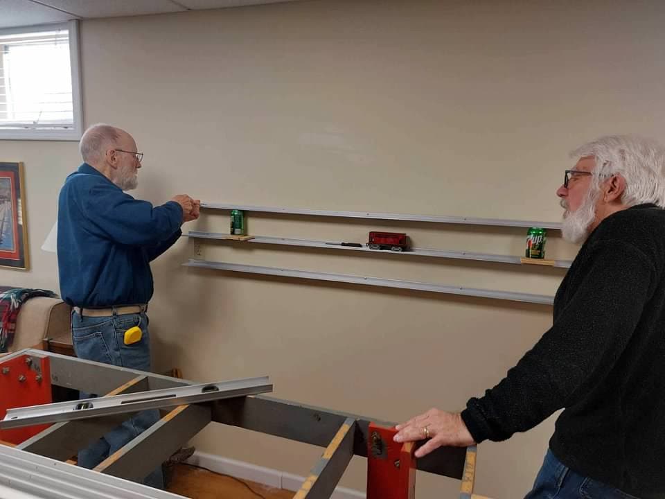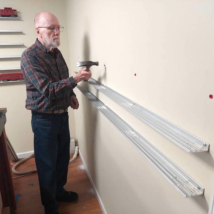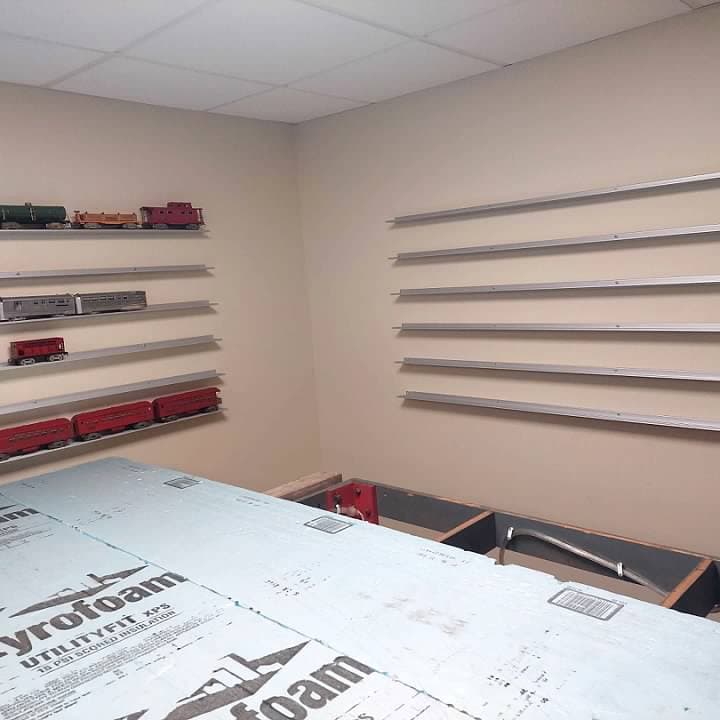 I have been working on several projects on the Arrowhead Central at the same time. One of them has been putting up my Glenn Snyder Rail Rax. I have had these for years and can only say good things about them. One of my friends from church has been helping me to get them mounted on the wall.