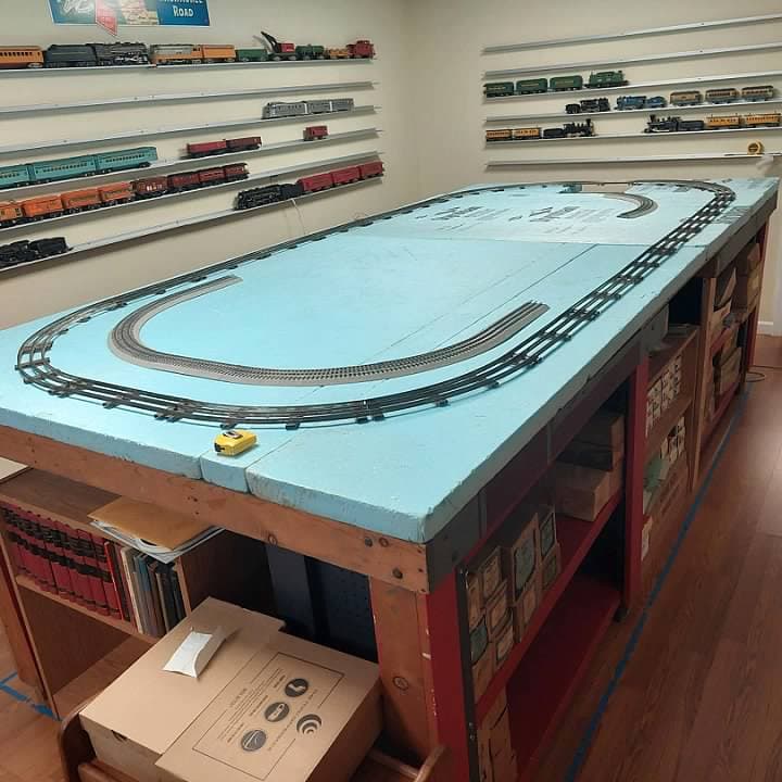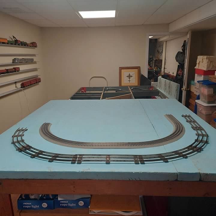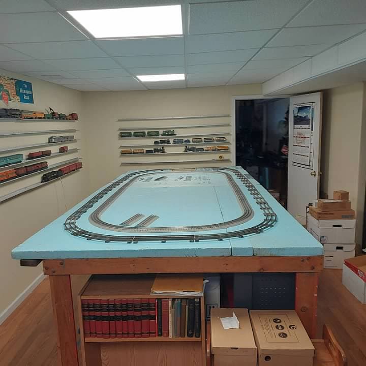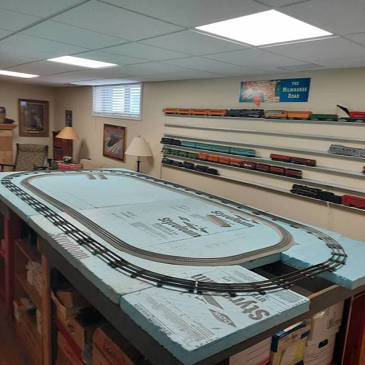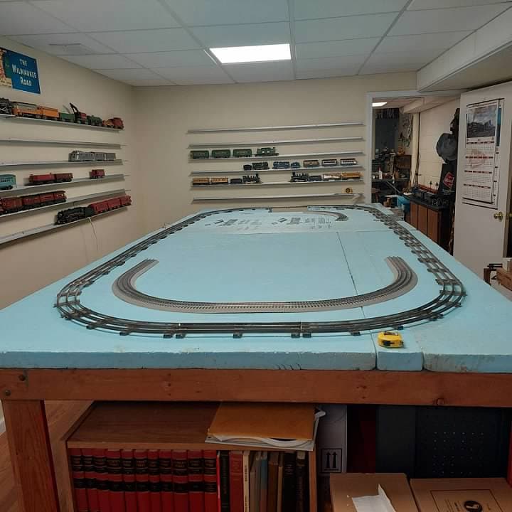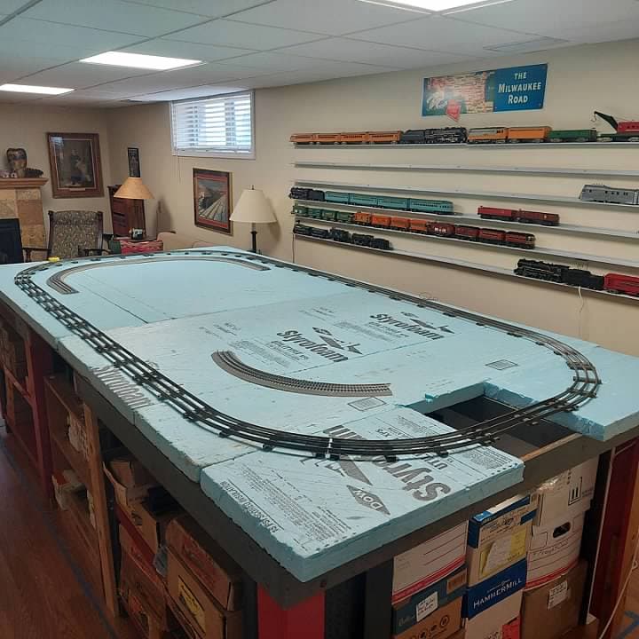 I also have quite a bit of AF Wide Gauge tubular track, all of it marked for American Flyer, in various conditions. For the time being I will use it on that external route. My plan is to replace it with USA Track with a 5 rail configuration. All reviews that I have heard of USA Track are that it is really excellent. I think it will be fun to have dual gauge operation on the outside track. I just need to figure out how much track I will need and order it once all of the blueboard is in place.