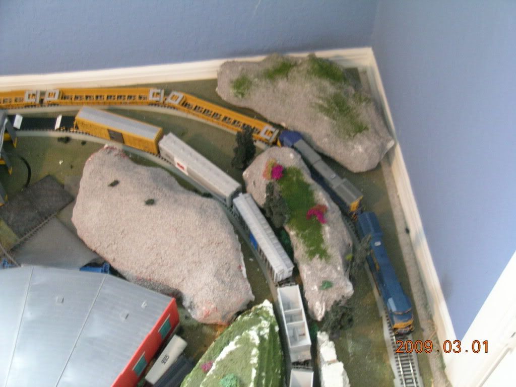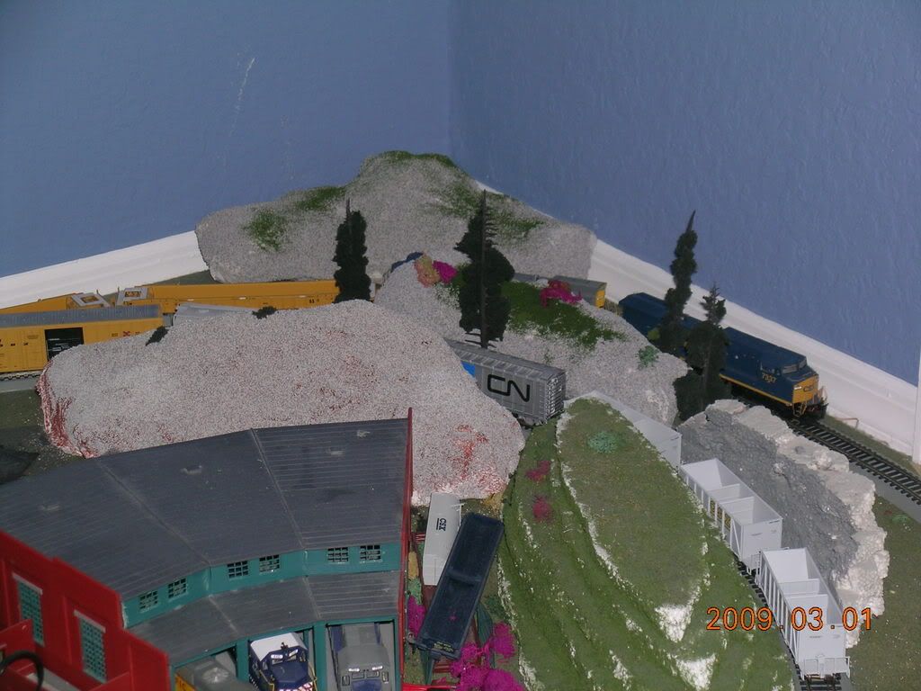 Nice job. A little scenic license with some paint, tree’s and bushes and it will look really good. I have a small concern about the clearance of those cars to the rock faces as they are going 'round the bend. BUT, that may just be the camera angle.