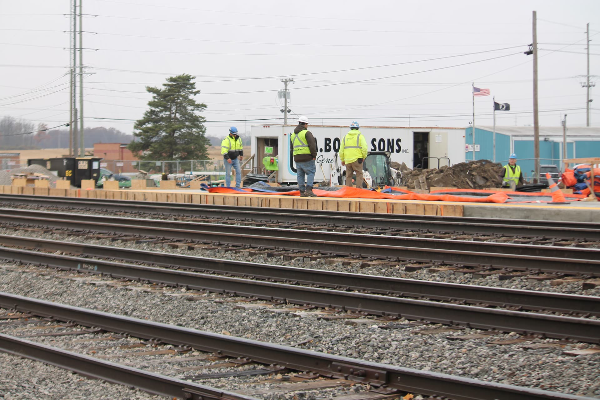 Amtrak 48 the eastbound lakeshore was the late(mechanical issues) train yesterday. It was the first time any of us there have seen it stop in Bryan in daylight. The dispatcher had to stop and put up blocks at the station so people could board the train. They were even talking about a recrew in Toledo. Here are pictures of the 48 and a work crew doing some work on the new station for Bryan. The platform is going to be higher and the station will have restrooms. The crew said they are going to button up the project for the winter and get back at it in spring. Need to run errands in town.