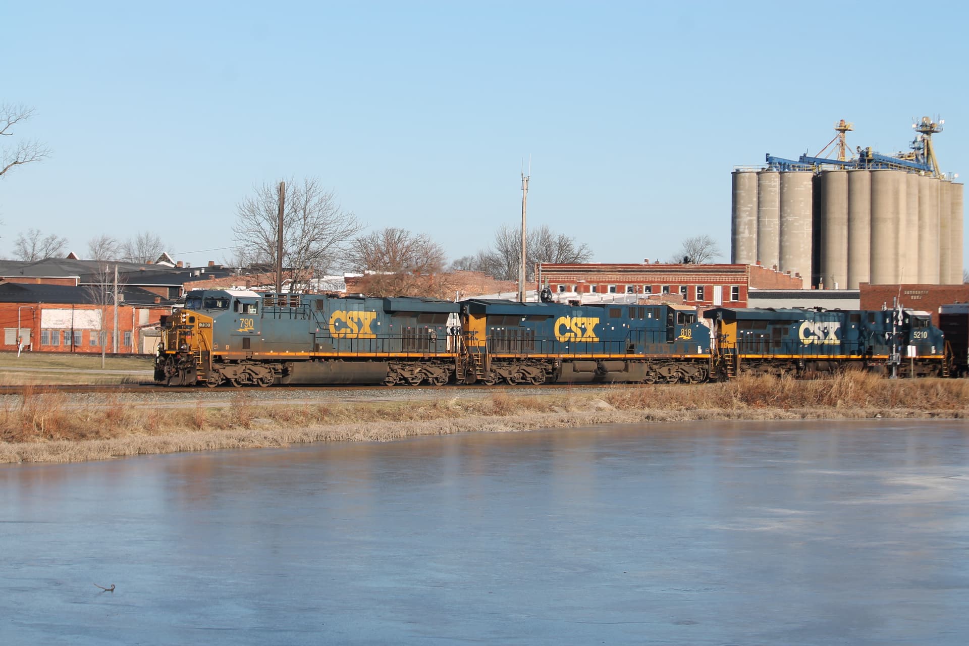 Got new glasses today. Had time to check a few things around Defiance. The NDW was able to put 20 cars together and go across the diamond. They also switched out a fertilizer plant west of town. The csx local had a former WM gp 40 for power today. CSX I 010 had the B&O heritage unit on the point as well. Guessers say some more snow for new years. Need to go give hugs.