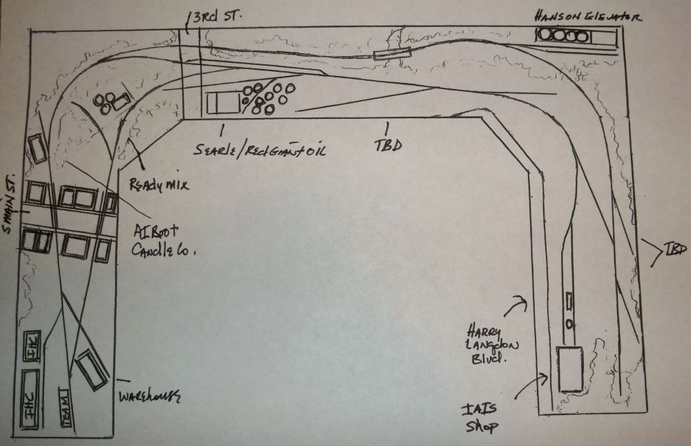 Finally have a track plan to post of the layout. It is hand drawn, I don’t have time to learn one of those software programs. The camera bent the image a little but it is square