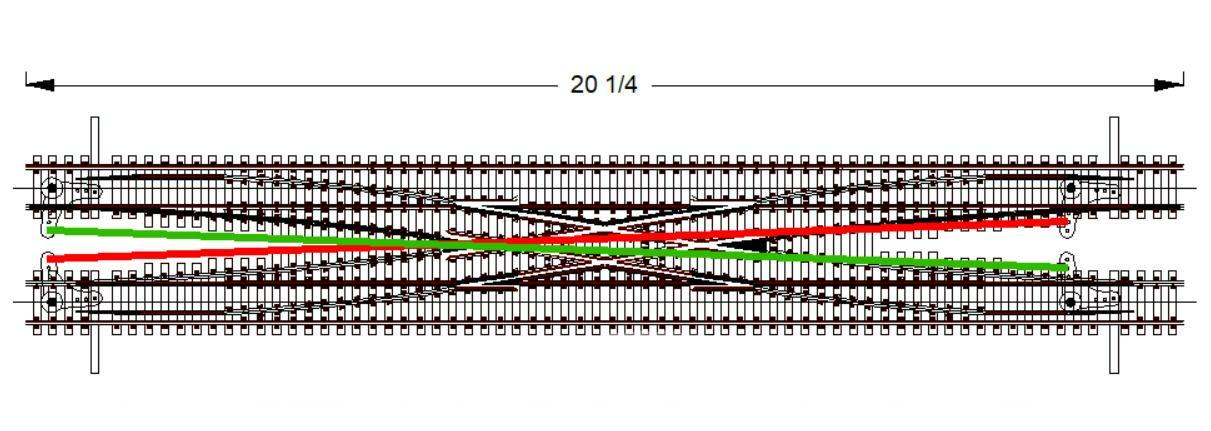 Turns out I had room (length enough) to utilize 2 pairs of single crossovers rather than the doubles. I also discovered that I could make very effective single crossovers using 2 Peco large size turnouts back-to-back. Here is a comparison,…Shino Dbl on left, then Peco large pair, Peco med pair, Peco sm pair,…