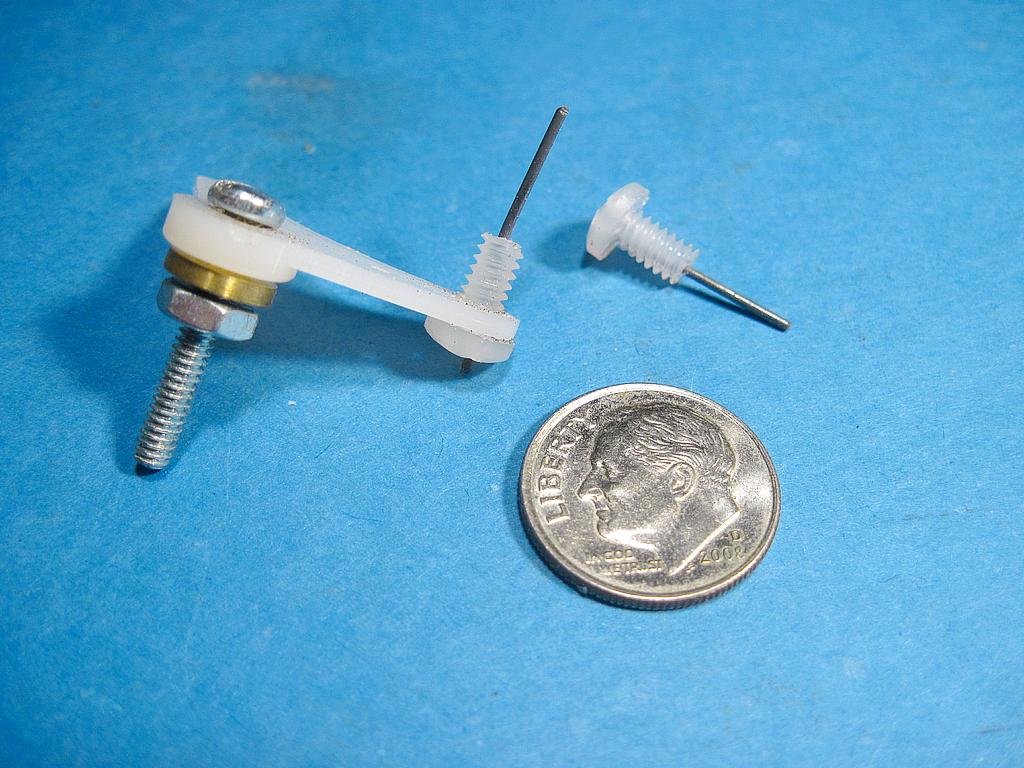 I don’t have any pictures of my bellcranks (Du-Bro 167) but I’ve used them for years for doing weird things. For my turnout control I drilled and tapped the outside hole of the 167s in one arm for 4-40 thread.