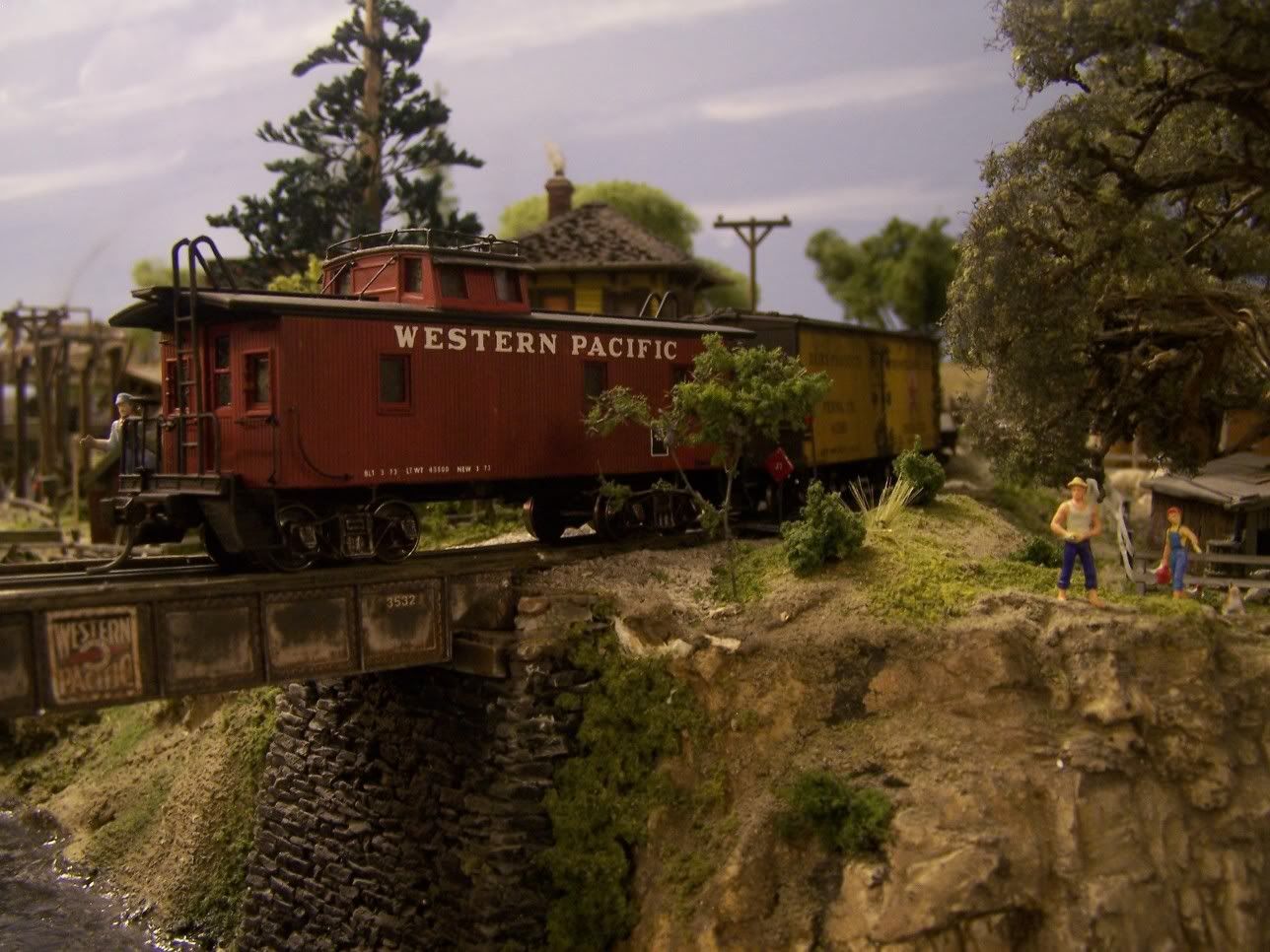 The first three pics were taken over the river cut-off bridge. The bridge was scratch-built using Micro Engineering plate girders.