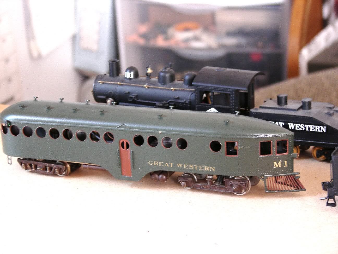Heres my roster for my GW Rwy,Two are Decapods,one by Spectrum a russion,The other is a brass import. I bought the spectrum first then found the exact GW #90 brass loco on Ebay.so the russion will be just a backup,till I figure what to do with it.I painted the diesel and the Brass decapod,the funny looking one is a McKeen motorcar by Ken Kidder,Found that at a local train show.I painted that in GW colors like the one they had,only difference is they ran a 70ft mine is 55ft.