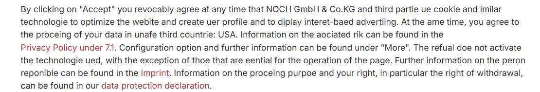 Can someone explain to me why the NOCH opt-out-of-cookies statement has no letter 'Sâes in it? How do you code something like that, let alone what reason is there for it?