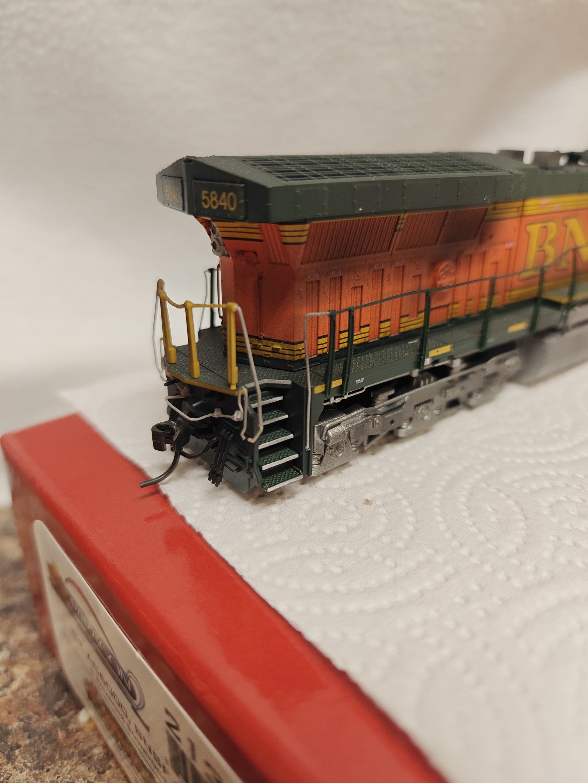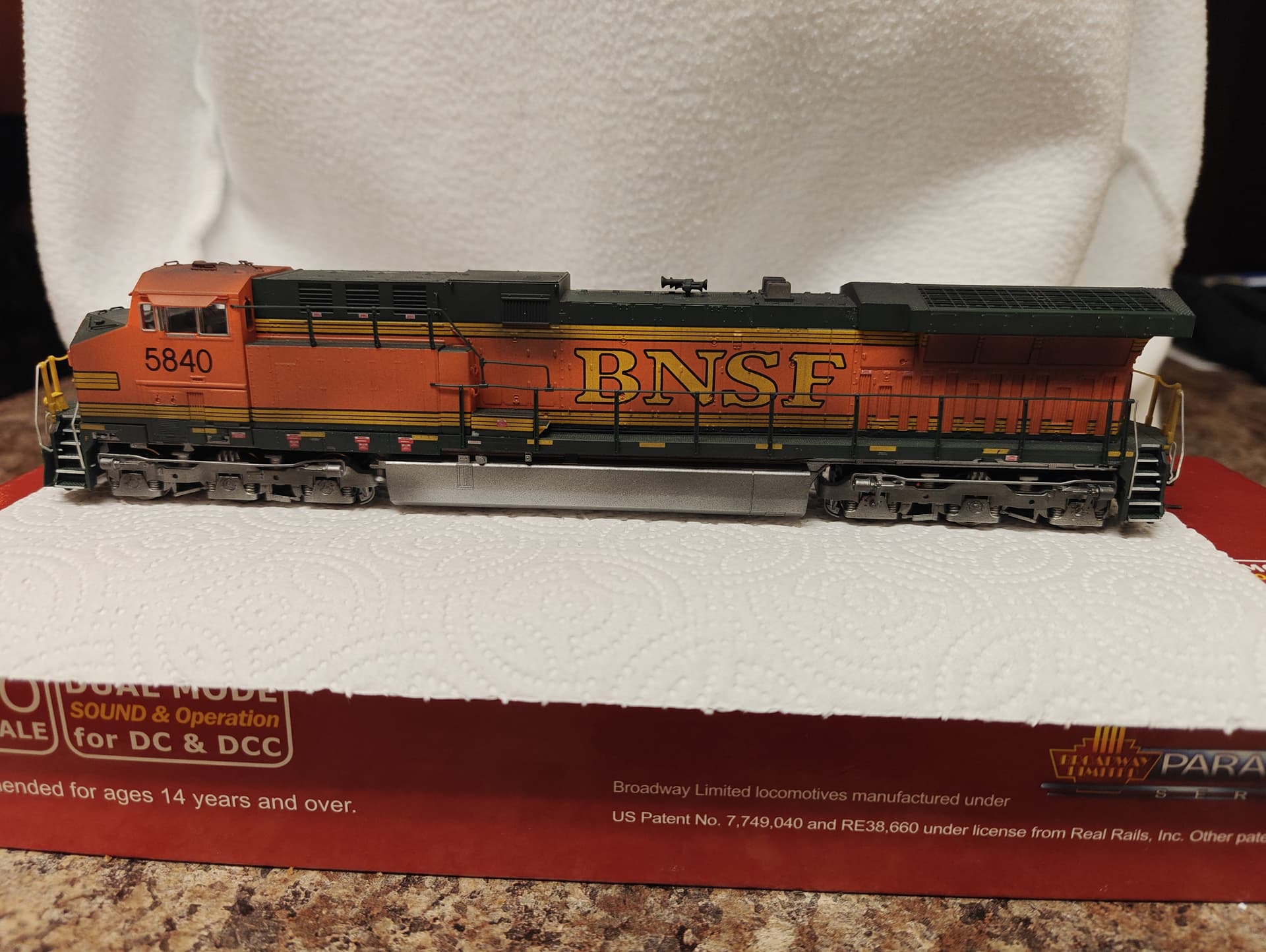 Went to a train show, found a table that had Broadway Limited GE locos for $250. It was my lucky day, the lady informed me that that particular table had become 50% off. Incredulous, I asked if that did in fact include the GE units with Paragon 2. She said it did. I should have bought all 3 right then and there, but I ended up walking home with just the BNSF AC6000 for $125 (because the weathering on the other two looked ridiculous) and quite pleased with myself. Runs great, sounds amazing. Perhaps you have already spotted the issue.