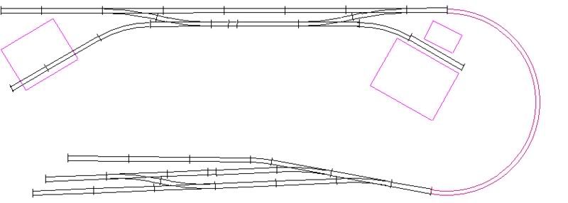 I am planning on running trains from the yard at the bottom to a small town at the top. There will be a scenic divider in the middle to seperate the two areas. I know I will be restricted to smaller engines and rolling stock, and that is no problem as I have a Proto 2000 SW9 that is waiting for work.
