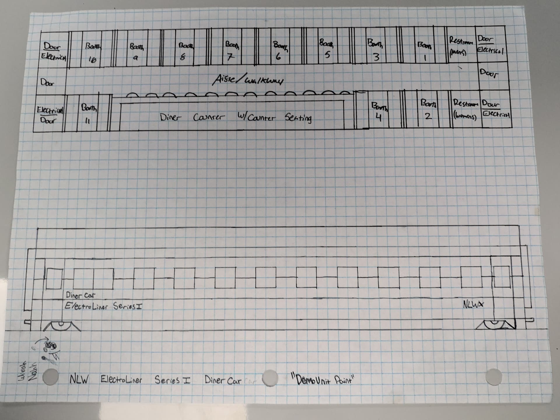 The diner car is supposed to have a Literal diner-style layout like the diners seen in movies, with counter seating and booths, and my handwriting isn’t the best! Sorry!