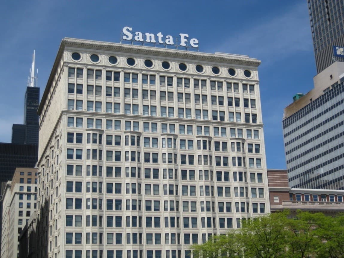 I forgot the correct name for the “Santa Fe Building” is actually the Railway Exchange Building, D.H. Burnham, chief architect. Indeed, this building is architecturally significant for a number of reasons, not least that it’s a prime example of the Chicago School of Architecture, characterized by a sophisticated arrangement of windows, among other things. I’ll go so far as to say this building is a national architectural landmark. Even the fabled Terminal Tower can’t claim that, because it came at the tail end of a design epoch, not at the beginning of one, where its influence could be felt.