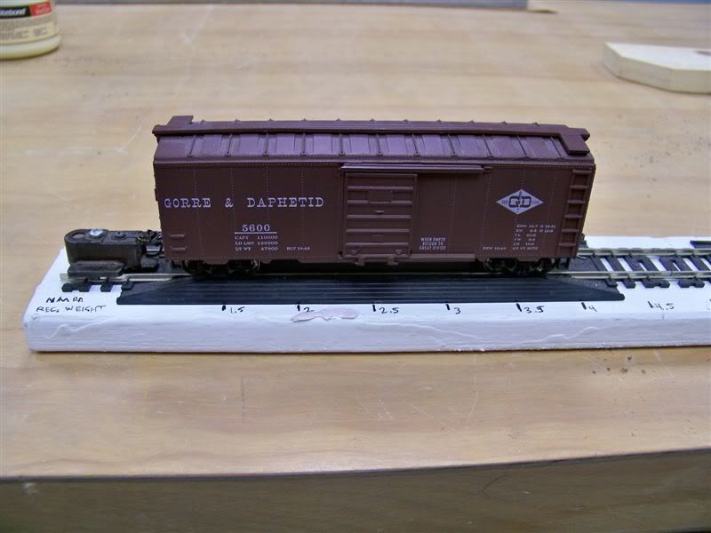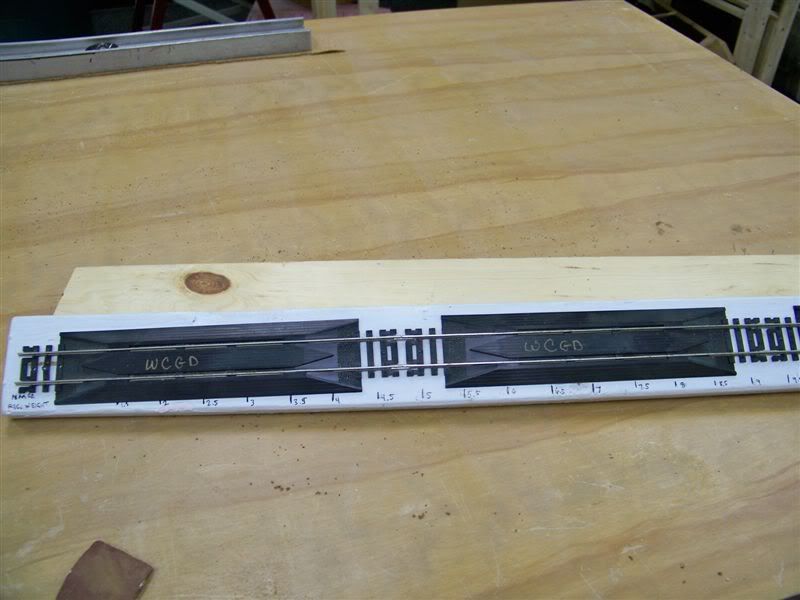 Mine has a couple of Kadee coupler gauges at the ends. I was going to screw them in but CA does a nice job too. Since they are the old metal ones I gapped one rail near the end to prevent shorts - and CA’d that rail to the ties too, since an inch long section of rail just wants to slide right out. So my test track does multiple duty - loco programming, couple height check, and, as soon as I get around to putting the marks on the board, a weight reference. Rather than mark inches from the end, I’m goign to mark the weights in ounces, so I can push a car to the end and read off how much it should weigh, then plop it on my scale and see if it checks.