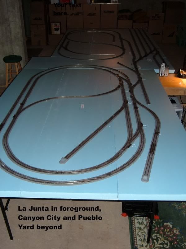 Years ago as a young teenage, I remember standing on 15th Street in downtown Denver waiting for a streetcar after my after school job and staring in the window of the old Caboose Hobbies store. I had dreams about using all of that stuff on a layout of mine some day. Well, finally, retired at age 73, I now have the time, space and money (a moderate amount) to do it. However, the thing that I don’t have is the physical agility to haul lumber down to my basement, build benchwork, crawl around up and down doing all that it takes for this kind of construction. So… the answer for me was two inexpensive ping-pong tables end to end (more room for a larger radius and scenery than 4’ x 8’).