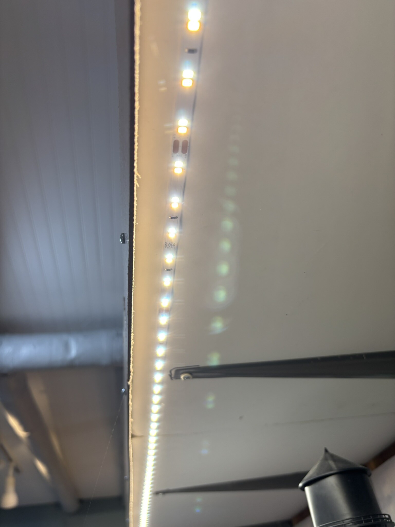 One of the advantages of the LED strips is that you can get with adjustable “temperature” settings. This is the “warm” setting (my preference) on lighting: