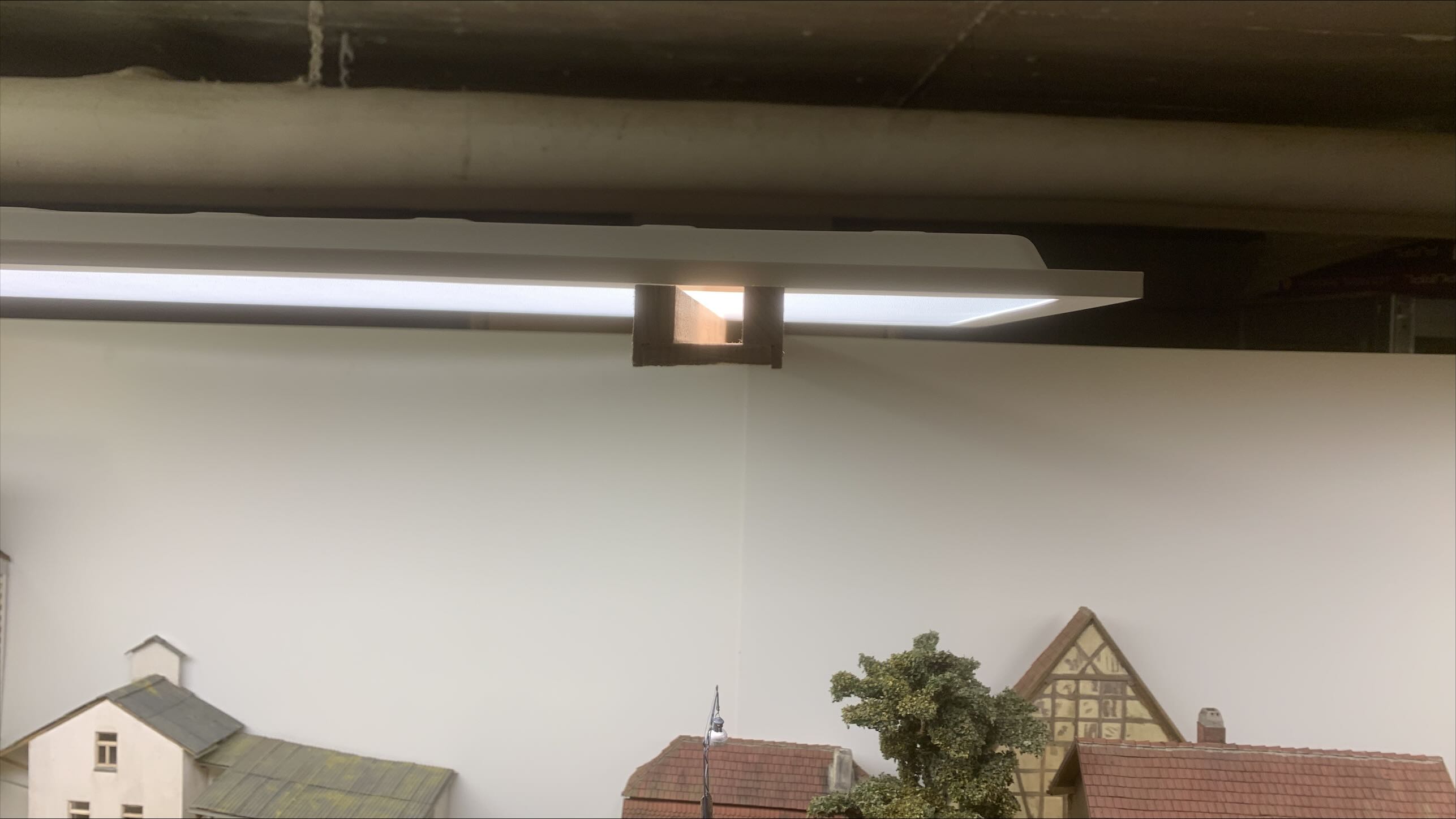 A couple of years ago, I started a switching layout, having the notorious light in the centre of the ceiling I designed supports for the LED-lights.