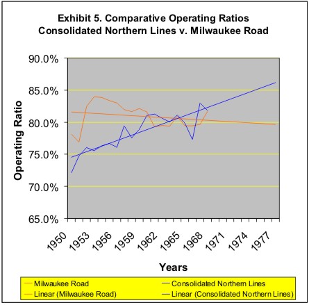 Indeed, by 1979, the BN was staggering under a 95% Operating Ratio, almost exactly what I had predicted in … 1970 if the trends of the 1960s at the consolidted Northern Lines did not change.