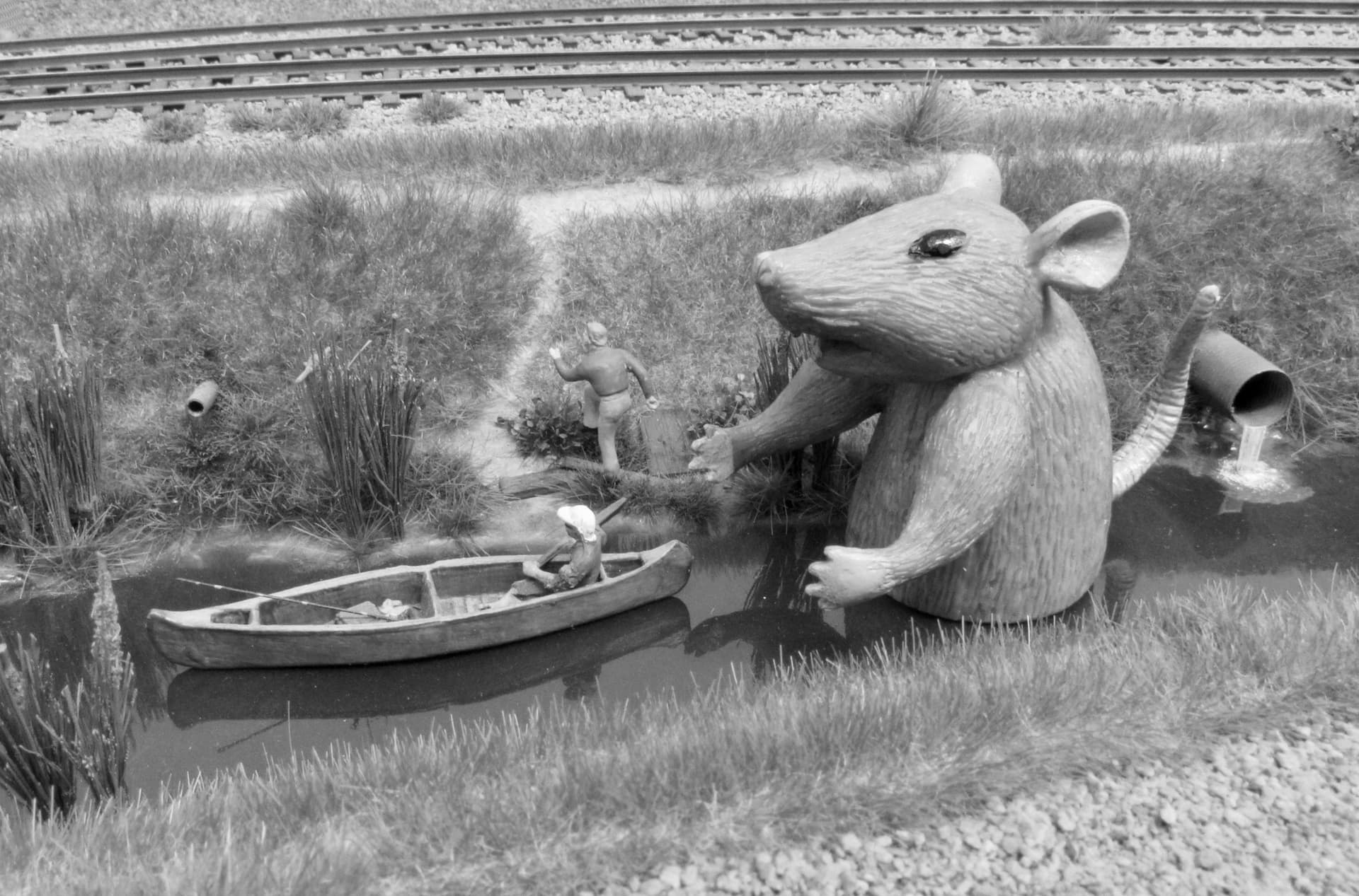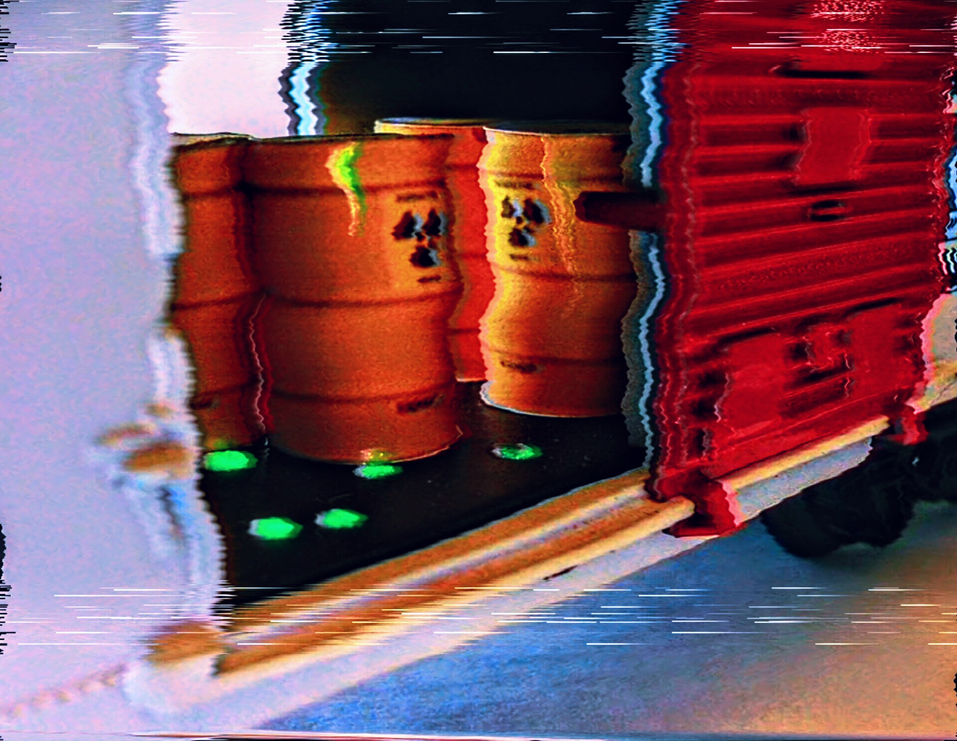 We all live in a Yellow Submarine! (And yes, this loaded flatcar would daylight every tunnel and tear out all bridges while enroute… which is why it sits stationary in my railyard.)
