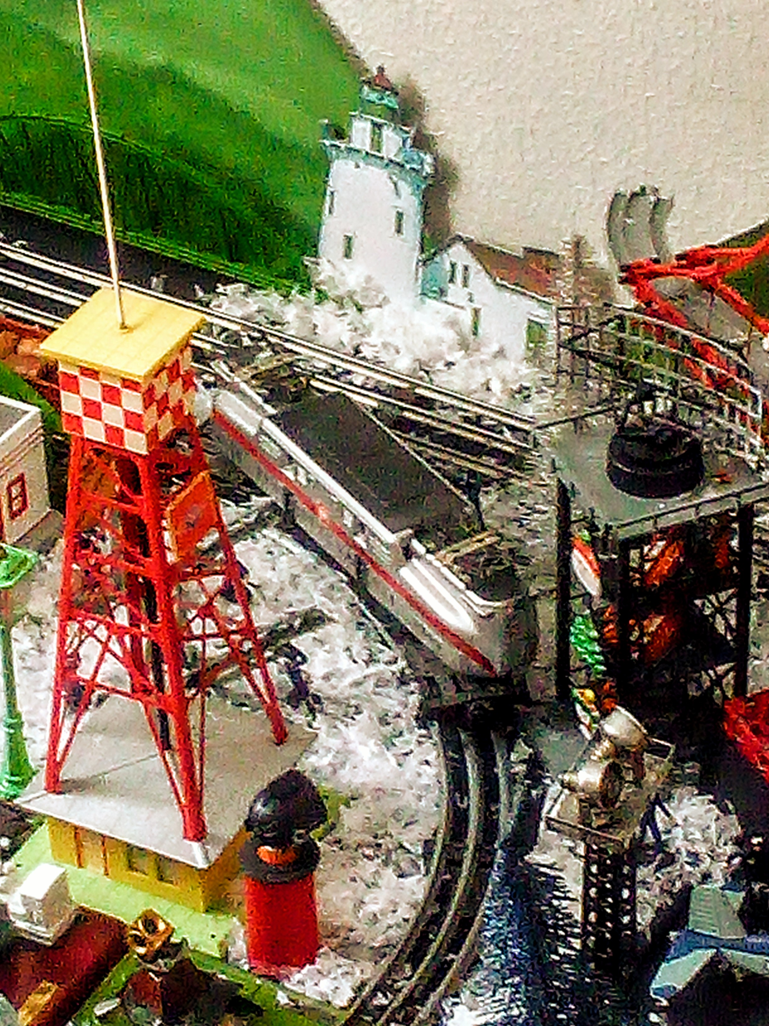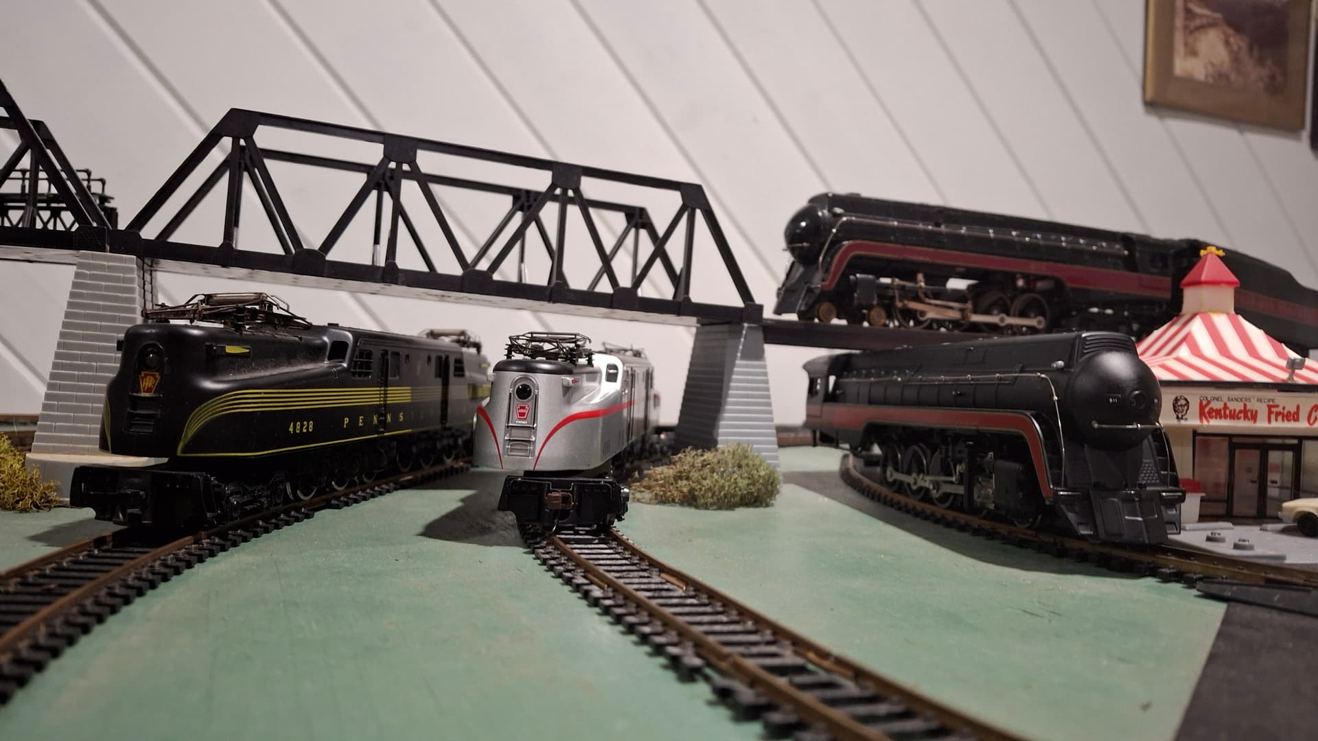 My two Bachmann N&W J’s, and two of my GG1s. The J on the bridge had the chassis swapped with a Bowser chassis by the original owner, the one on the bottom is mine from when I was younger, and did not survive being owned by a kid too well (the rear truck is misssing). The silver GG1 is Bachmann, the brunswick GG1, I still dont know who made it (not AHM/Rivarossi, not Pemco)