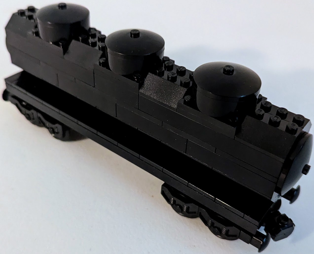 Here’s my late-1930s automobile-on-flanged-wheels. (a rail mobile, to be precise), which is used for track inspections. The design is based of a 2014 San Diego Comic Con exclusive set of the green / yellow car from Action Comics 1, with some added railroad flair and a change of colors.