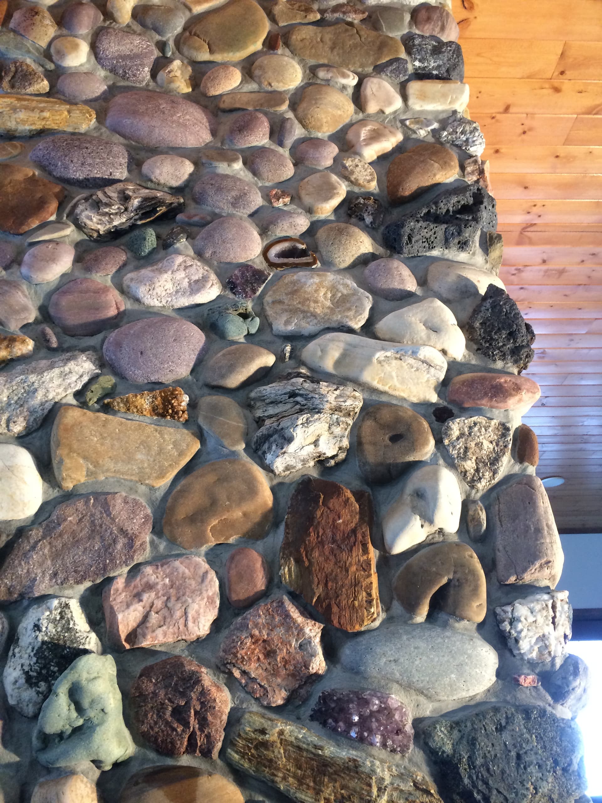 We put an addition onto our kitchen in 1997 and had a fireplace built on the rear wall. The stones are limestone and the whole thing has its own foundation in the basement.