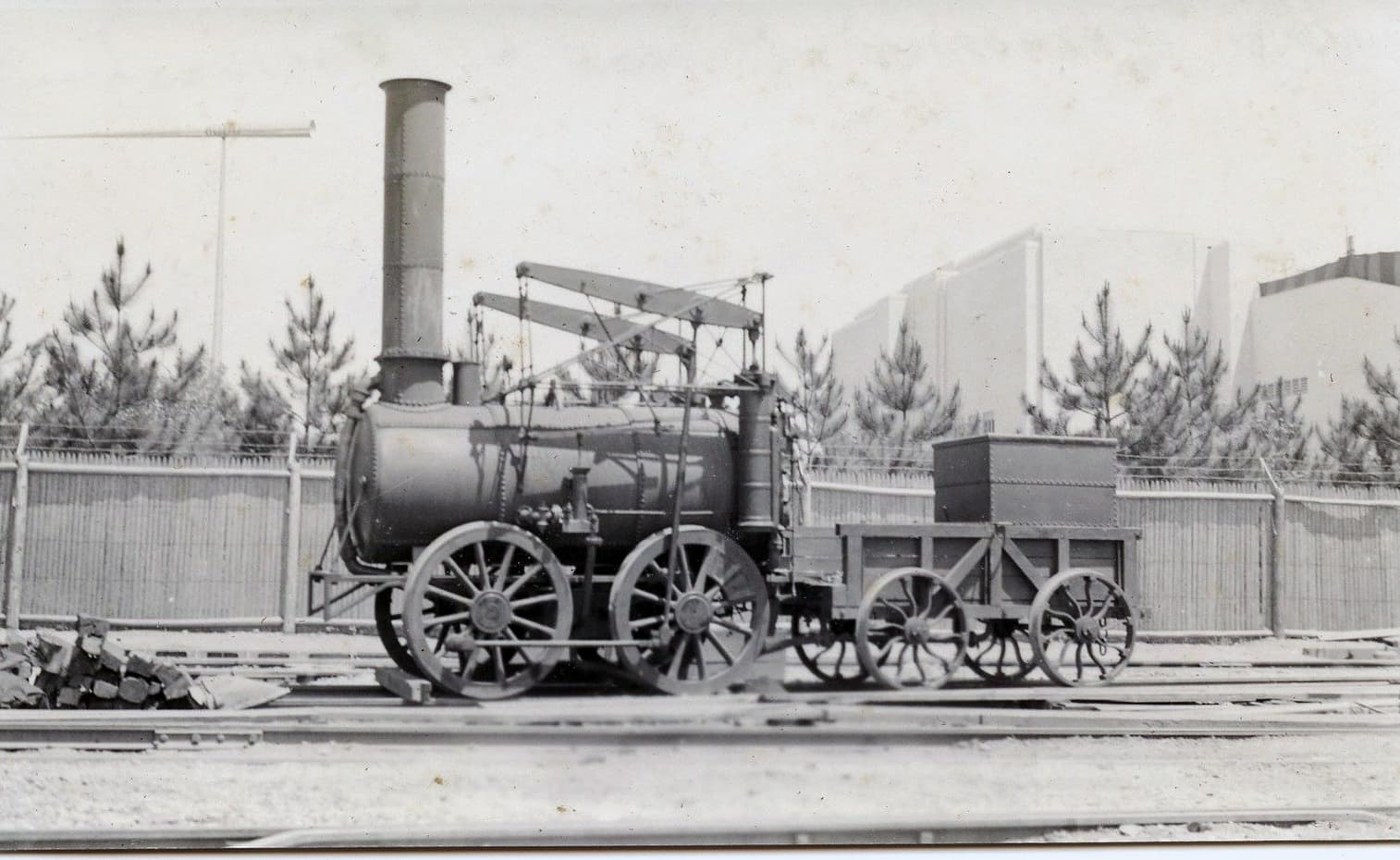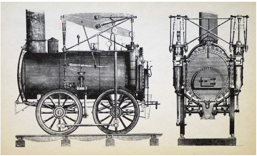 The locomotive, obtained by the Delaware & Hudson Canal Company, shipped to New York in May 1829, where she was tested - raised-up on blocks.