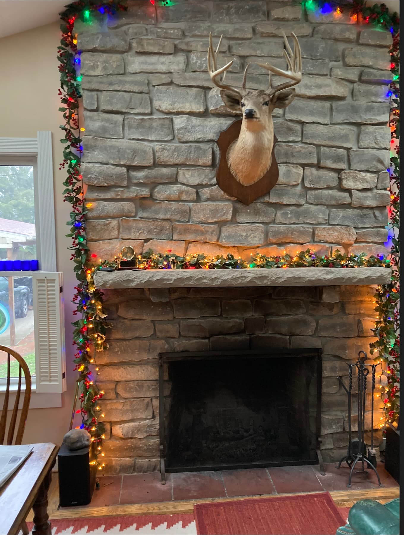 When you add up the cost of the wood plus the annual visit from the chimney sweep, it’s not cheap to use–but we absolutely love the effect. We entertain in this room with its kitchen table, fireplace and appliances. The 12-point deer head was taken about 1955 by her dad and looks much better here than in the living room of his Cape Cod-style bungalow, right?
