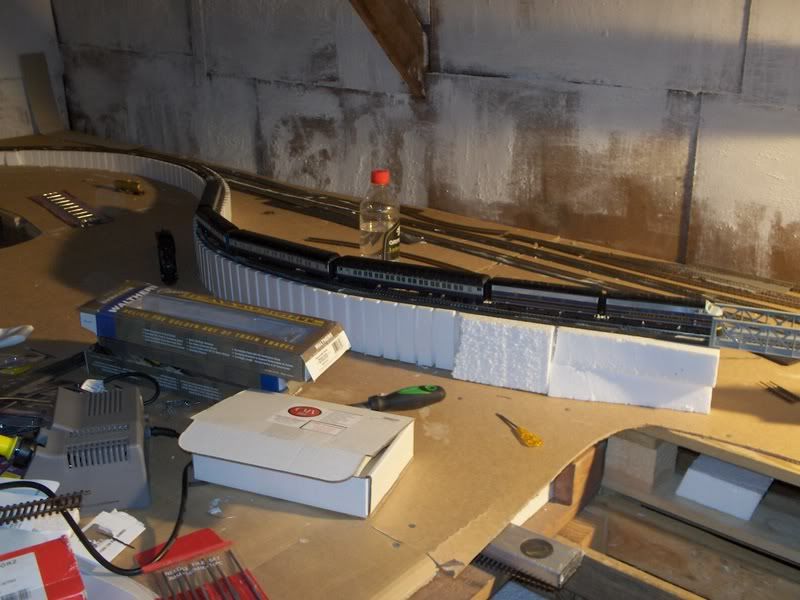 So today I ripped up about 10 feet of track and totally reworked the entire area from bench work and up. Making sure that everything now runs smoothly. Next I will do the same to a poor piece of track that occasionally causes derailments. Perfect tracks are the goal, this is after all something as I see as a trial layout with some permanence.(2-5 years) Flex track is after all cheap.