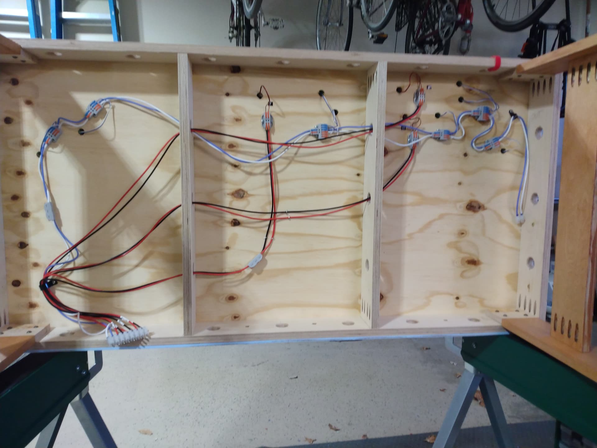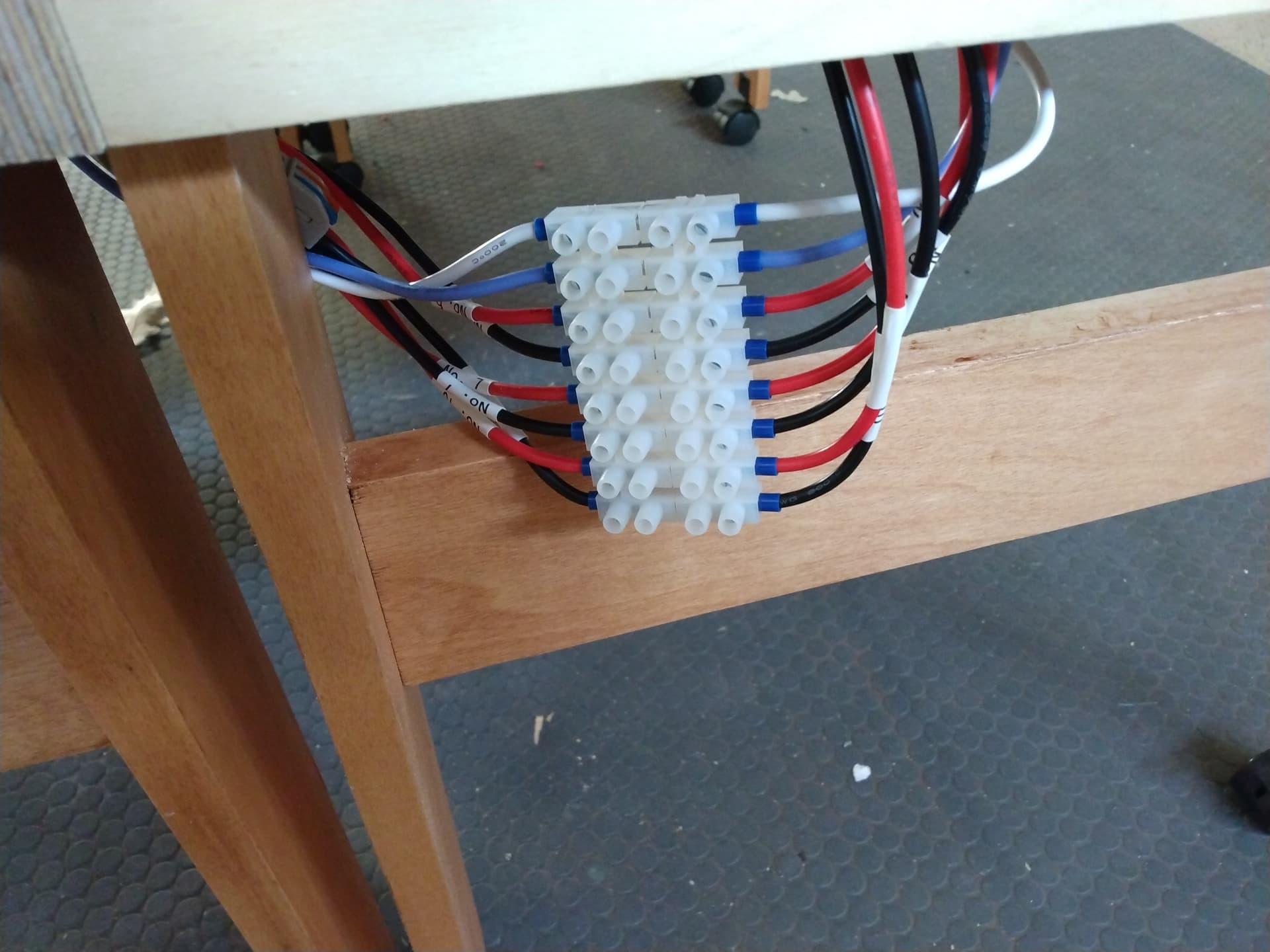 I have completed the wiring. I was using Anderson PowerPole connectors between the sections, but I have found them unreliable and switched to using European pluggable terminal blocks I have seen used by Charlie Bishop in England. For the drops I am not using suitcase connectors but GKEEMARS connectors (2 in 4 out). And I used GKEEMARS connectors for the turnout wiring (2 in 2 out). They are nice to work with and easier to work with than suitcase connectors. The fact that you can open the levers and remove a wire for troubleshooting is also nice.