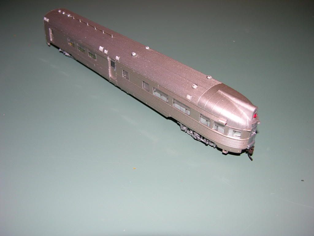 My kitbash is based on the Walthers Budd observation car. Windows and doors were re-arranged to match the prototype.