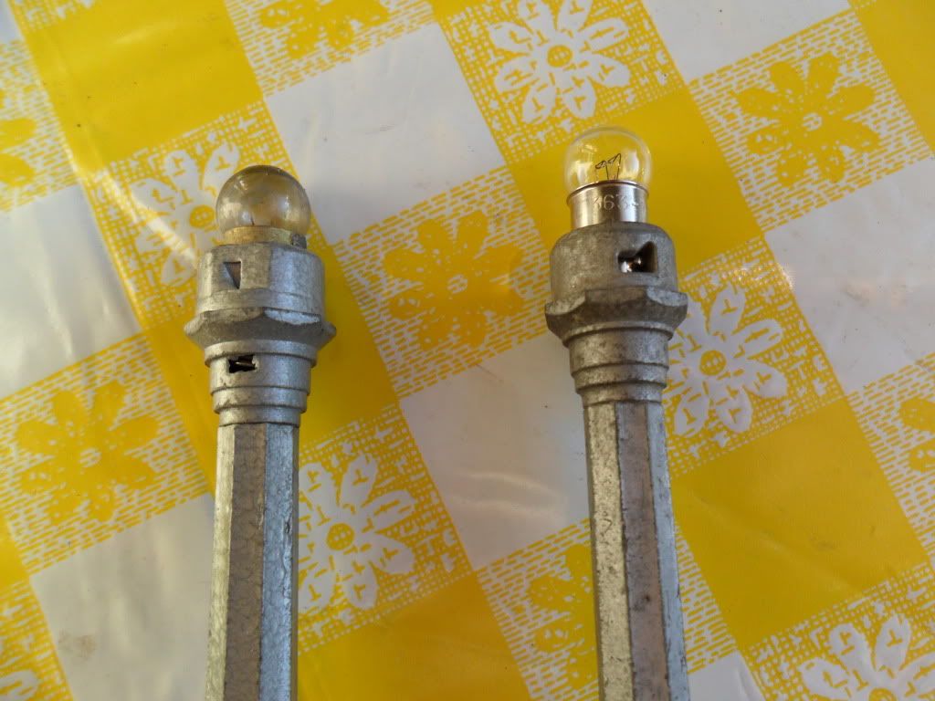 J D Lathbury had the R-91 springs so that part is covered. It is interesting that, while the sockets take the same bulb, they are of different construction. One require a left twist to insert the bulb while on the the other you twist right. The castings are different too. See the photos.