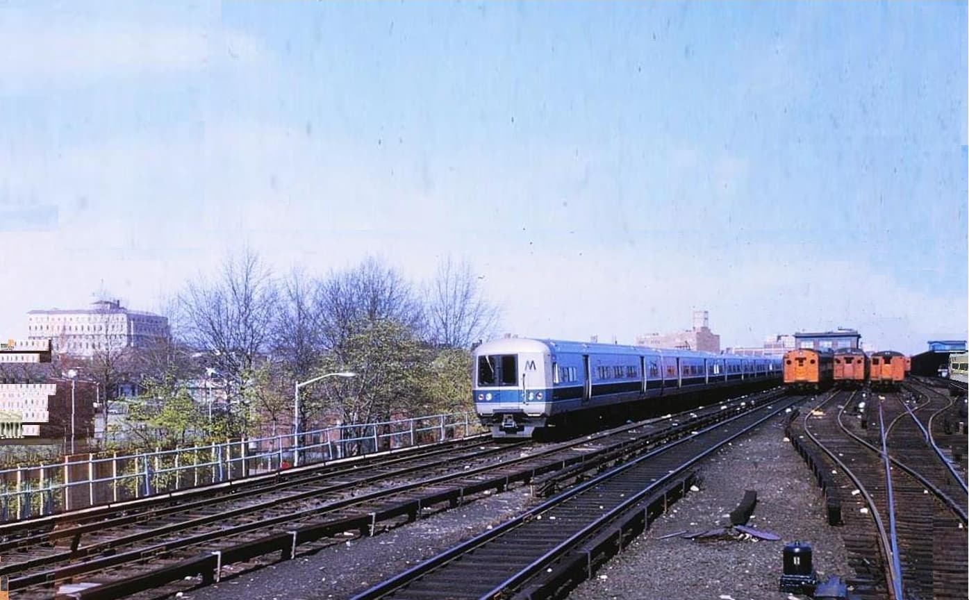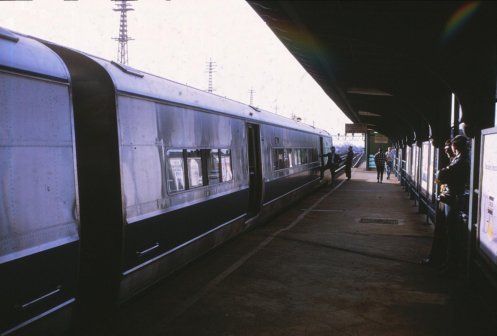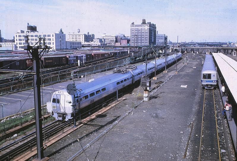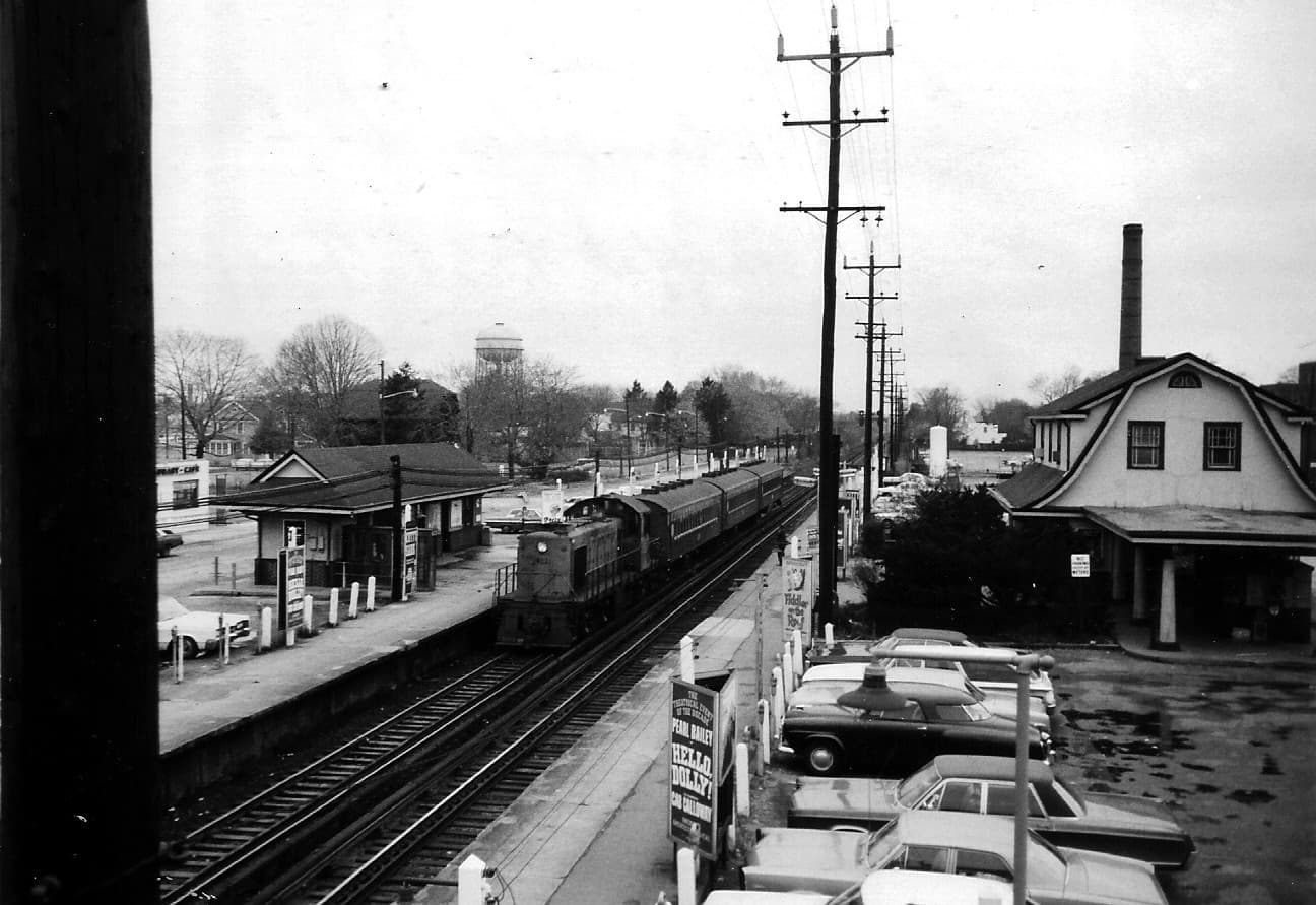 The first two color photos are at the Hunters Point LIRR Station, used by trains terminating and originating at the Long Island City Station or Yard, not going to or from Manhattan’s Pennsylvania Station. A four minute subway ride from the nearby subway station got one to Grand Central. I wonder if the LIRR ststion here still has service after LIRR trains began serving Grand Central with East Side Access’s opening. The third color photo is at Willets Pt., the old Worlds Fair site The B&W diesel train is at Mineola, about ten years earlier.
