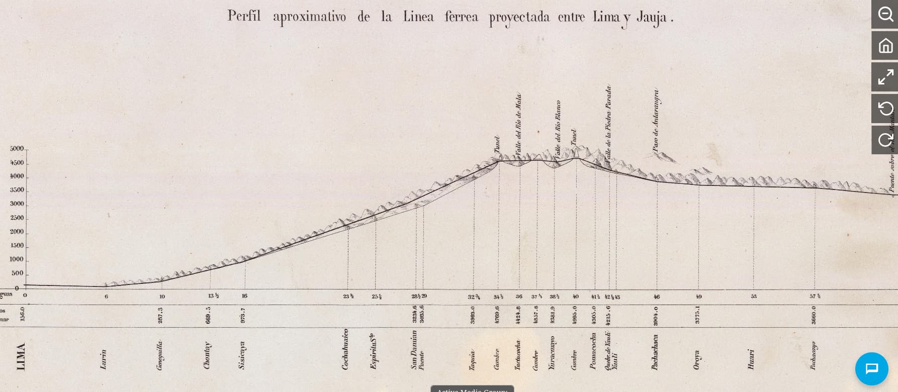If there are problems with the link, look for “Mapa de la exploracion de cuatro vias entre Lima, Juaja y Pasco” in the Rumsey collection (Verify Access).