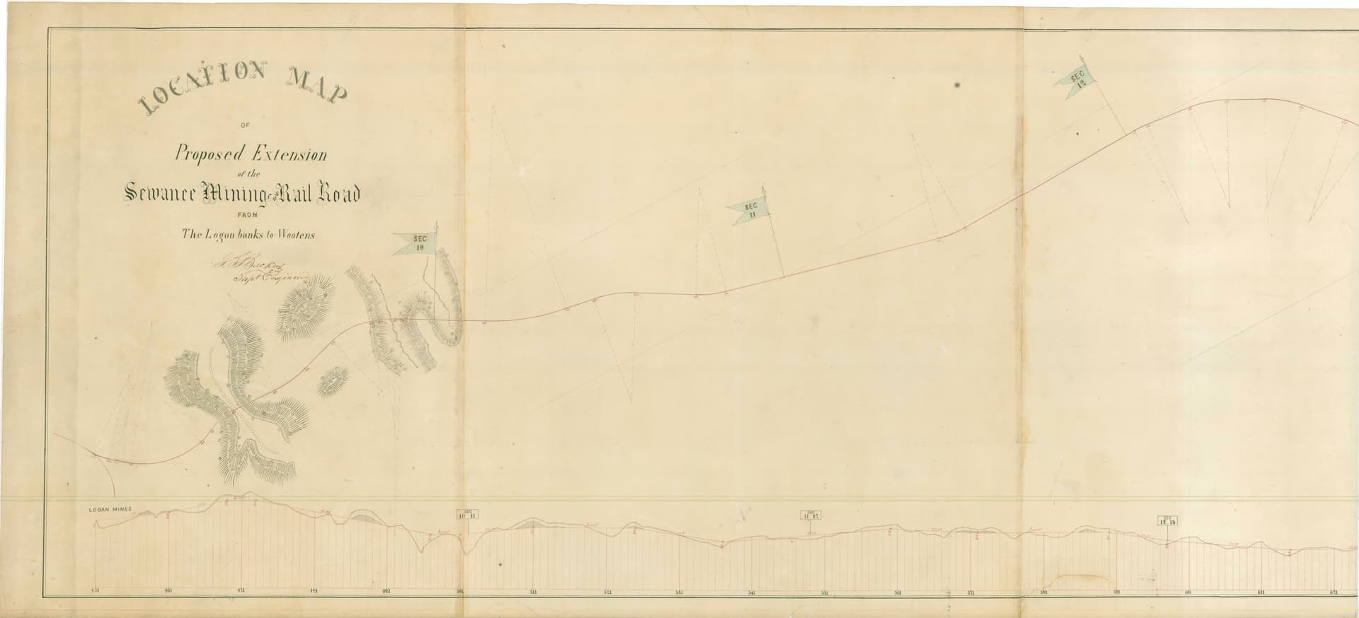(The thin line/thick line reading seems to be confirmed by other texts from the time: an alternative proposal by Edmond Roy, Backus’s profile for the extension of the Sewanee railroad, etc. What is a thick line here would usually be a red line.)