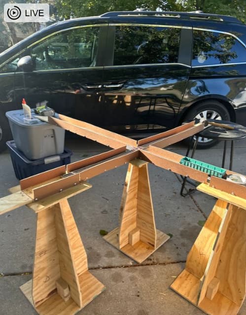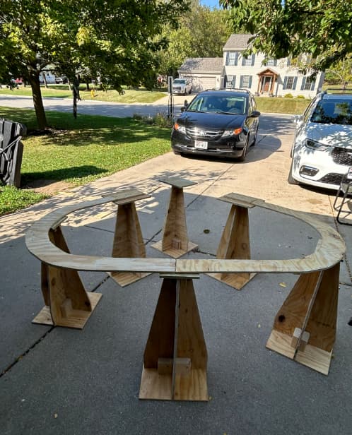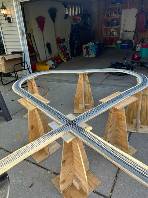 From concept, to build to install. Just make sure to have enough supports to handle the overall support that the platforms will require. Level it to your tables so the track is flush on the platform to the tops of the tables.