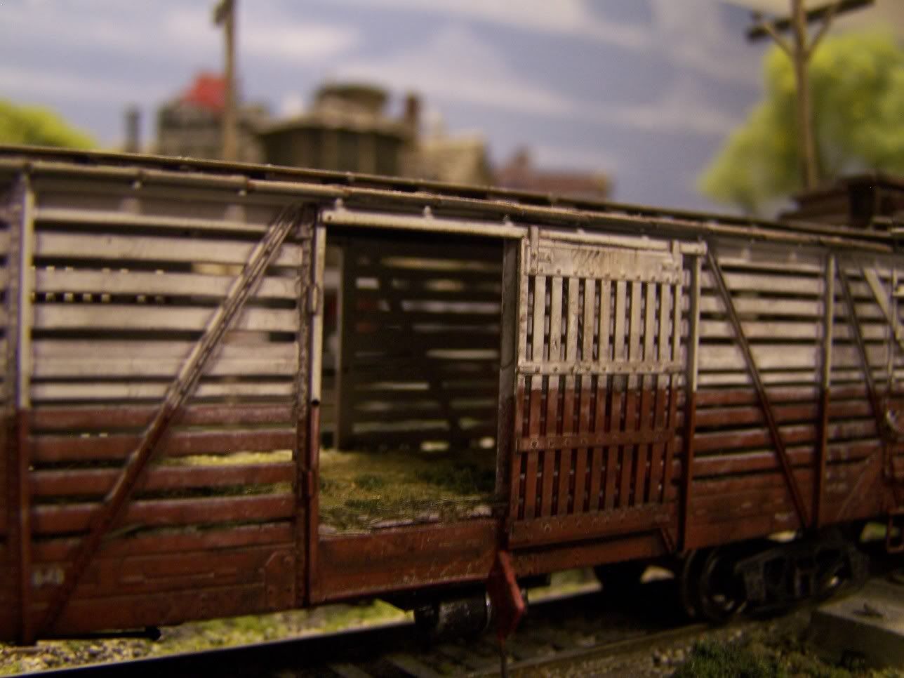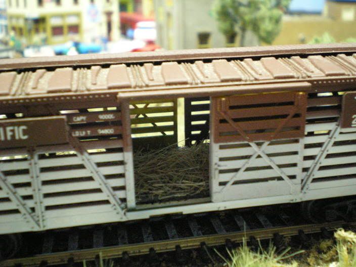 Here’s a pic of a Central Valley Stock Car. For this car, the hay was mixed with dirt to simulate the transport of other livestock: