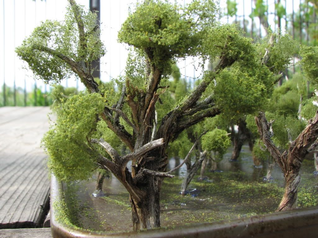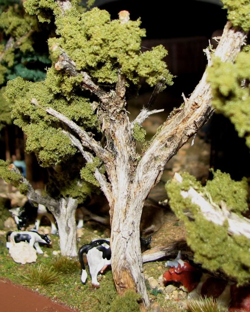 After some pruning, Woodland Scenics fiber, and Woodland Scenics ground foam, I managed to make 31 trees. I did end up making a few of them “dead trees” but most have green on them.