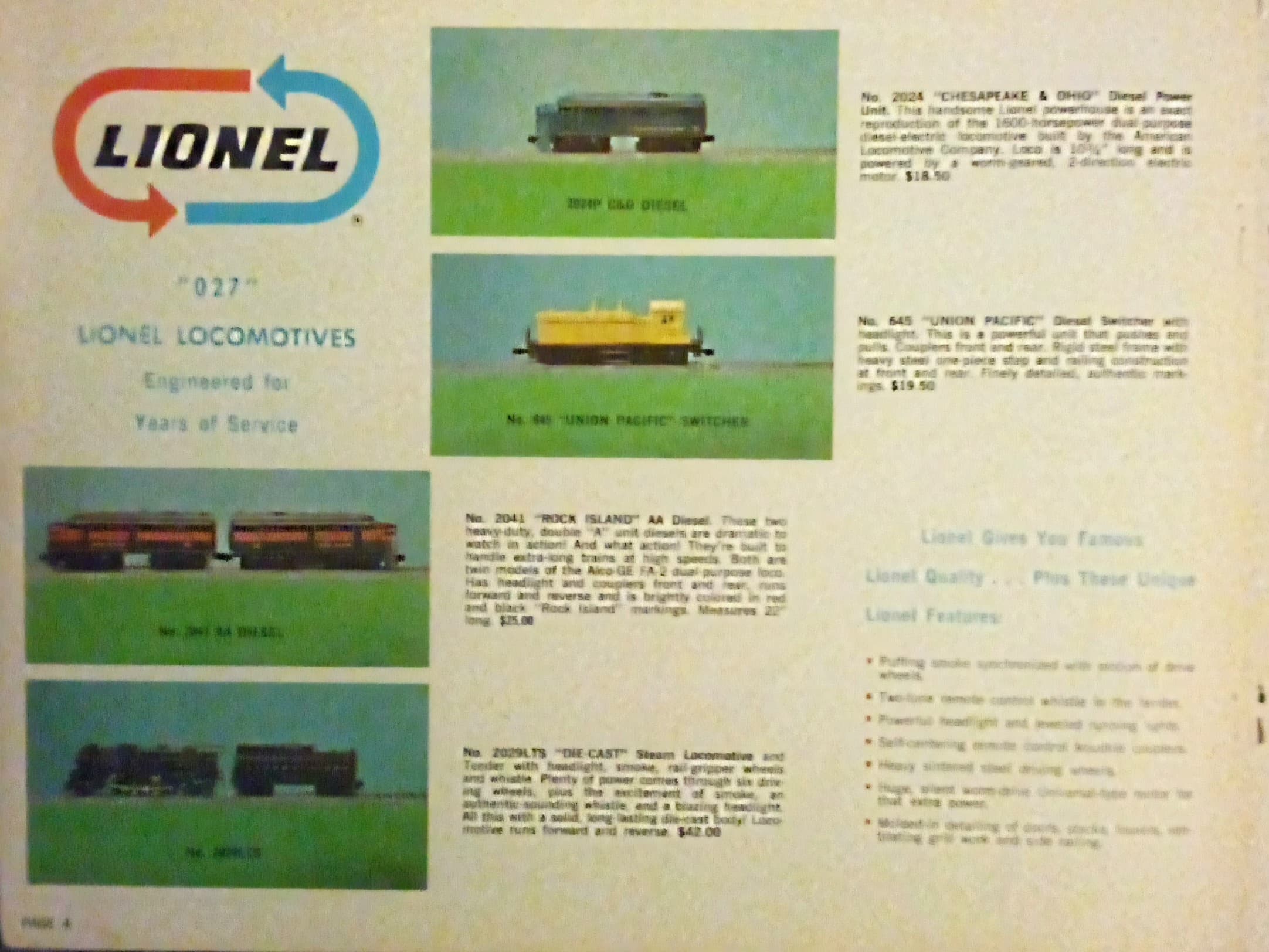 You make a great point about General Mills production vis-a’-vis late Lionel Corp, Becky. Take that C&O Alco, for example: the MPC 8020 is heads-and-shoulders better. I had one of the C&Os, and it was cheap in ways that one of the DC starter engines would have recognized.