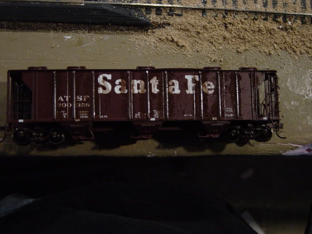 Paint some rust and crud on the hopper doors and hinges of the hopper car.